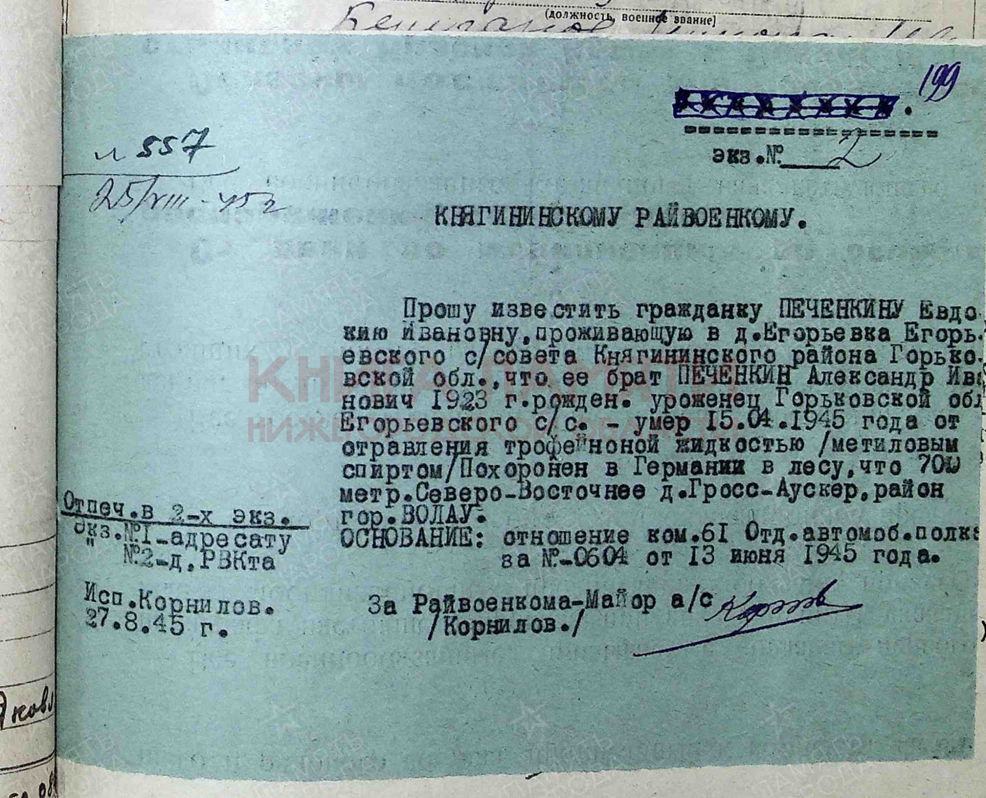 Умер от болезни 15.04.1945