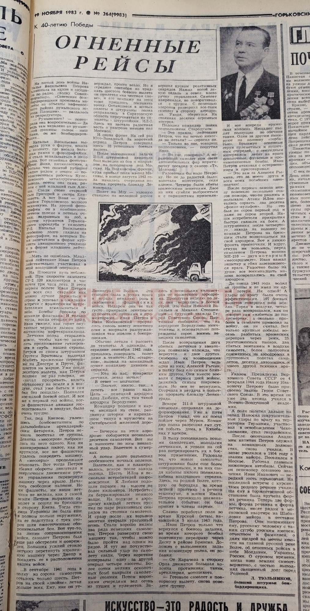 Статья из газеты Горьковский рабочий № 264 от 19.11.1983 (смотри вдокументах)