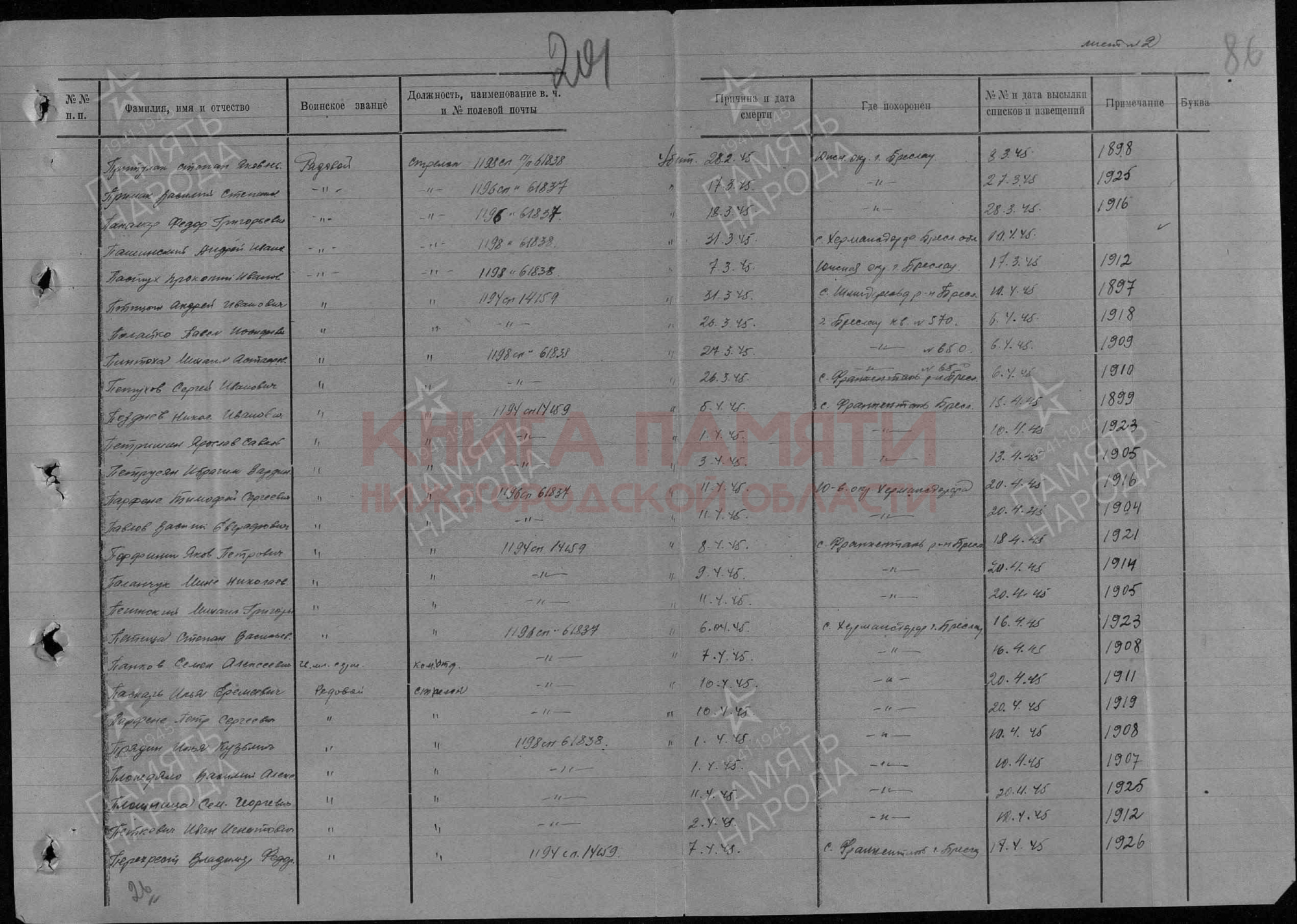 Погиб в бою 26.03.1945