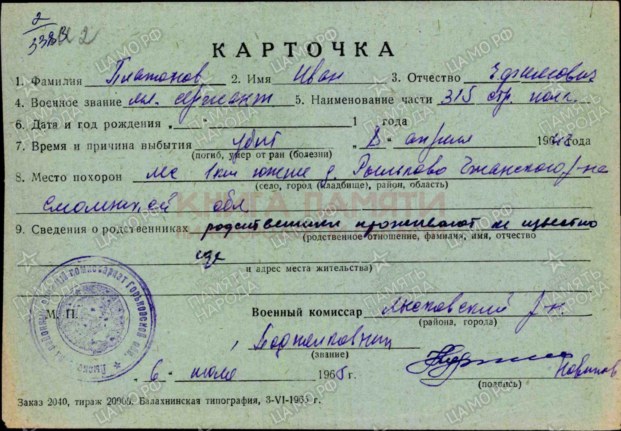 Ссылка на «Память народа»