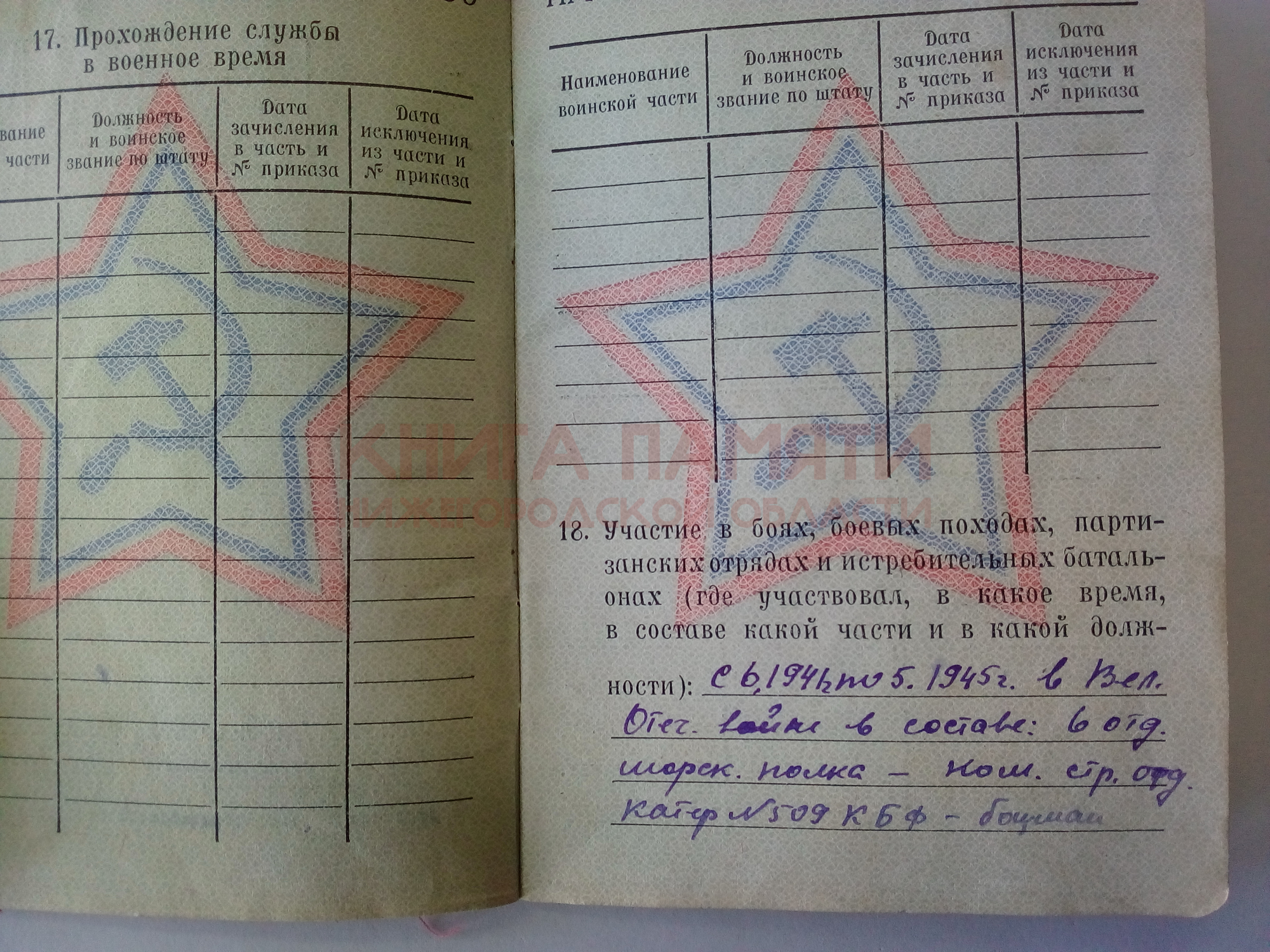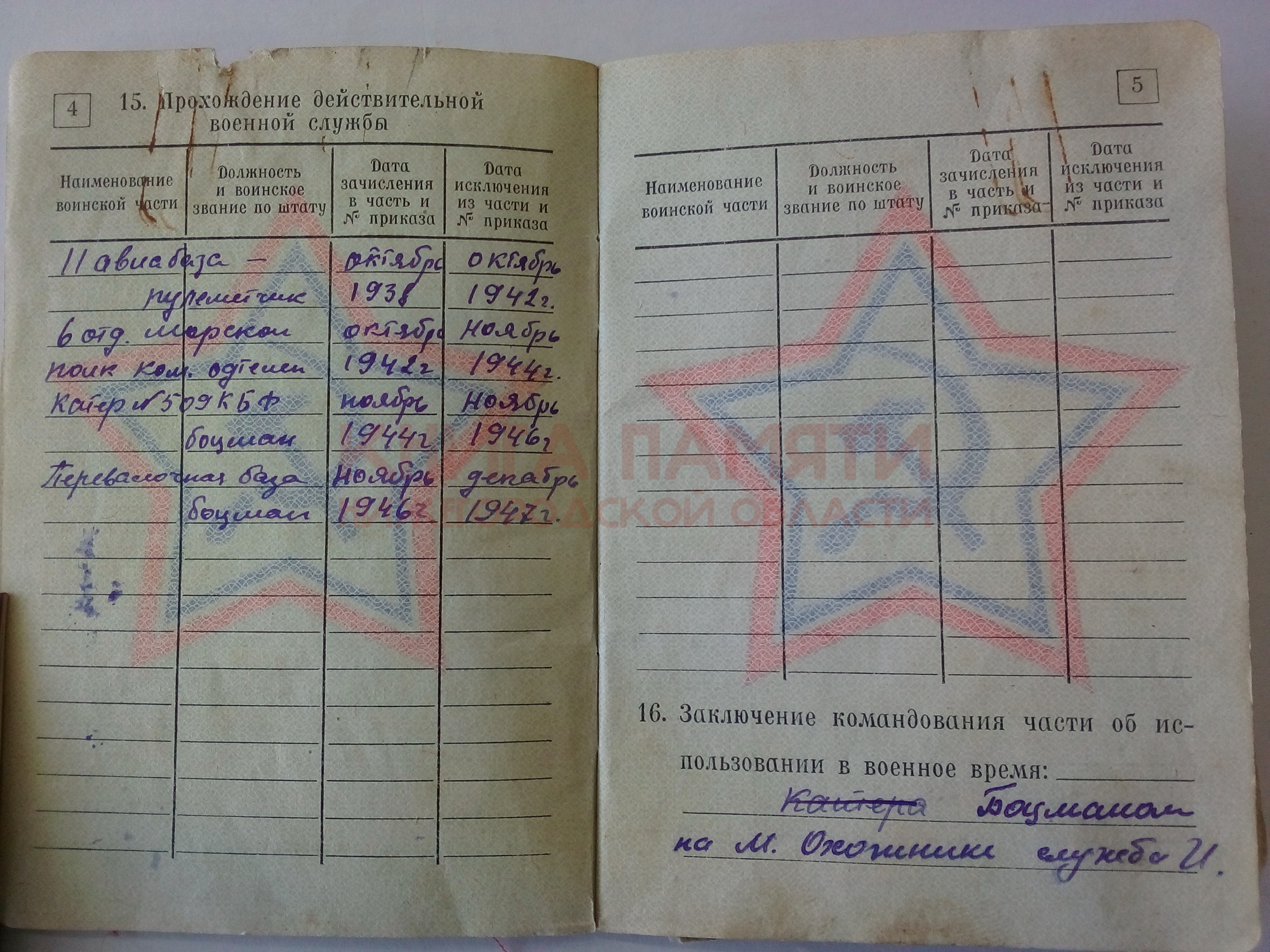 Служил на Балтийском море. В 1938 году был призван на действительную службу в армии, потом война с Финляндией и вскоре с Германией. Служил боцманом на катера . Оборонял г.Ленинград.