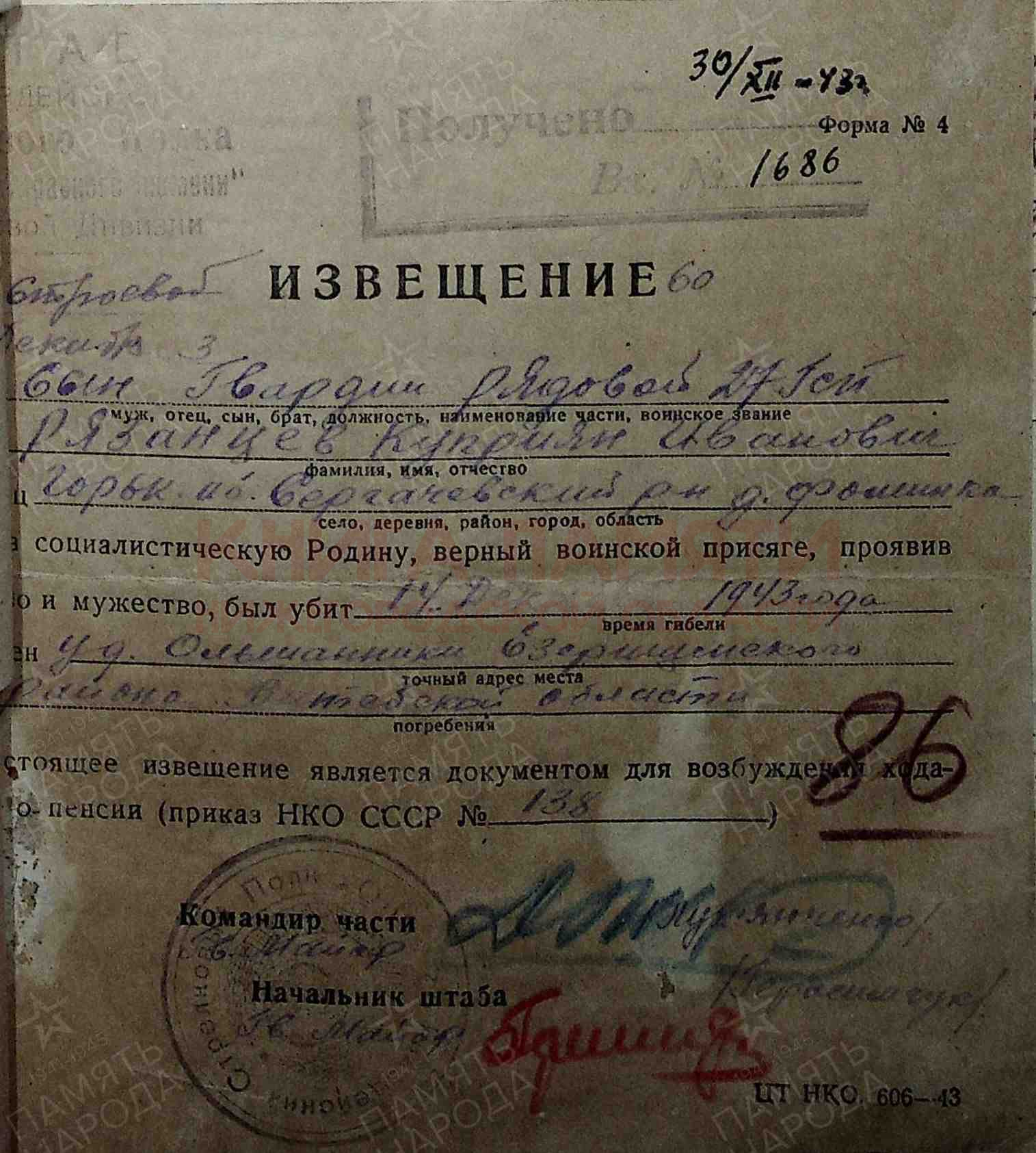 похоронен в дер. Ольшаники Городокского р-на Витебской обл, Белорусия