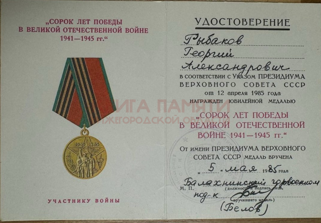 В феврале 1947 состоялось еще одно важное событие в его жизни: Георгий женится на Вале Трусовой, жительнице поселка Большое Козино. Познакомились они в 1942 году, вскоре после того как молодой лейтенант прибыл на службу в Горький. И ничто не смогло разлучить их: ни тяжелые военное время, ни два года разлуки. Они связали свою жизнь с нашим поселком: Георгий Александрович более тридцати лет обучал козинских мальчишек и девчонок, а Валентина Ефимовна Рыбакова (Трусова) лечила их, была бессменным поселковым педиатром.