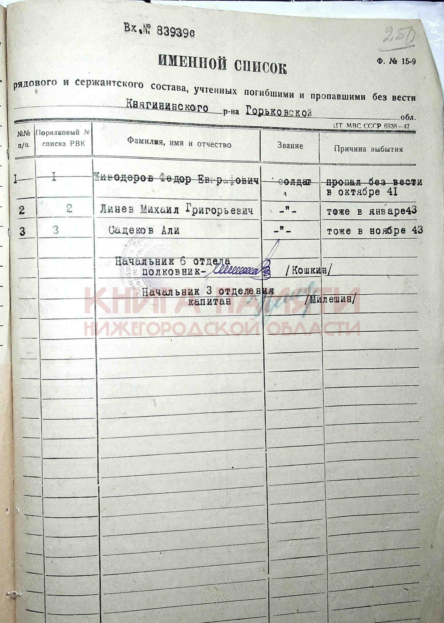 Пропал без вести _.11.1943
