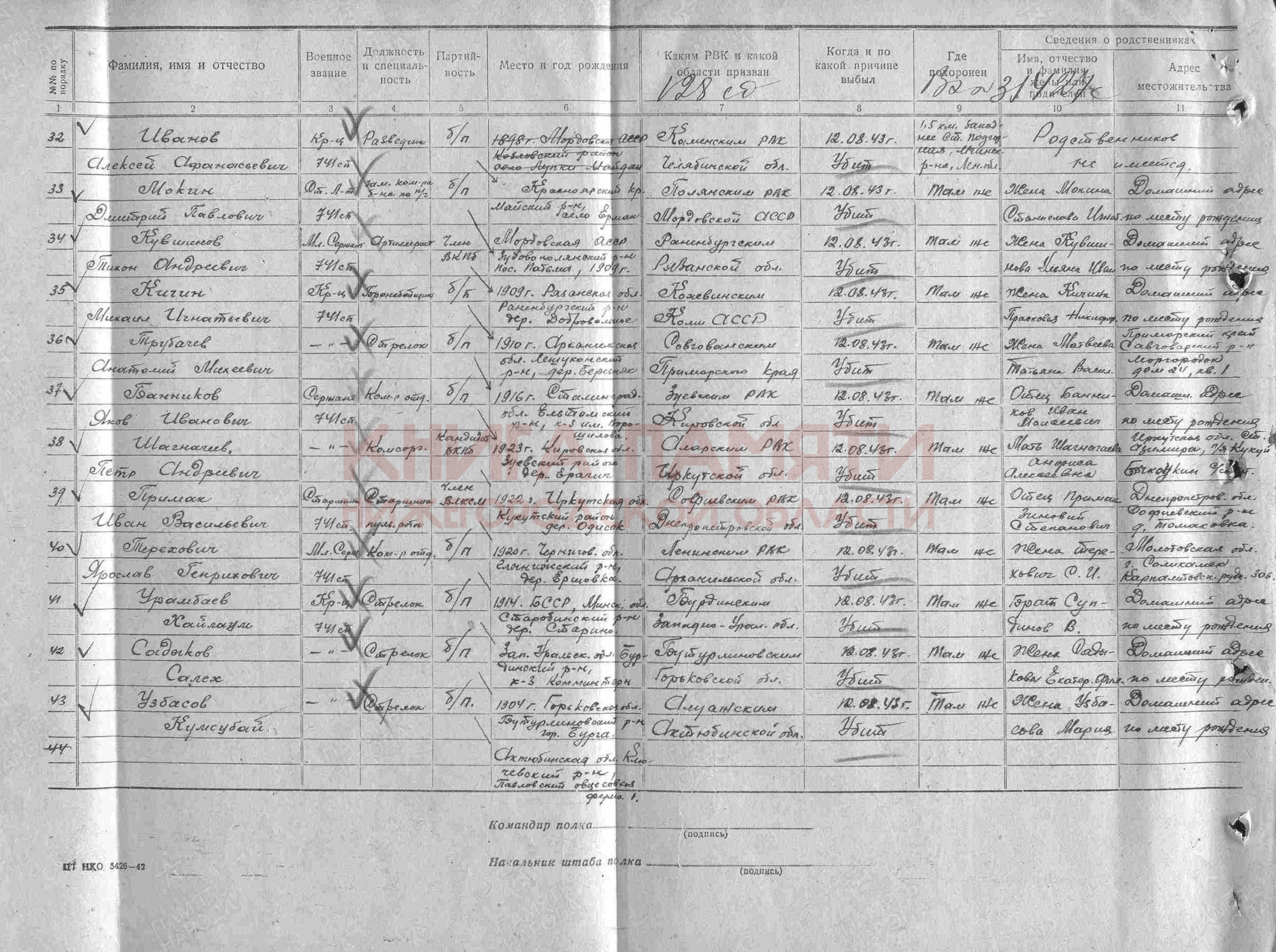 Погиб в бою 12.08.1943