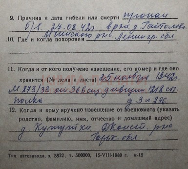 пропал без вести 1942г.