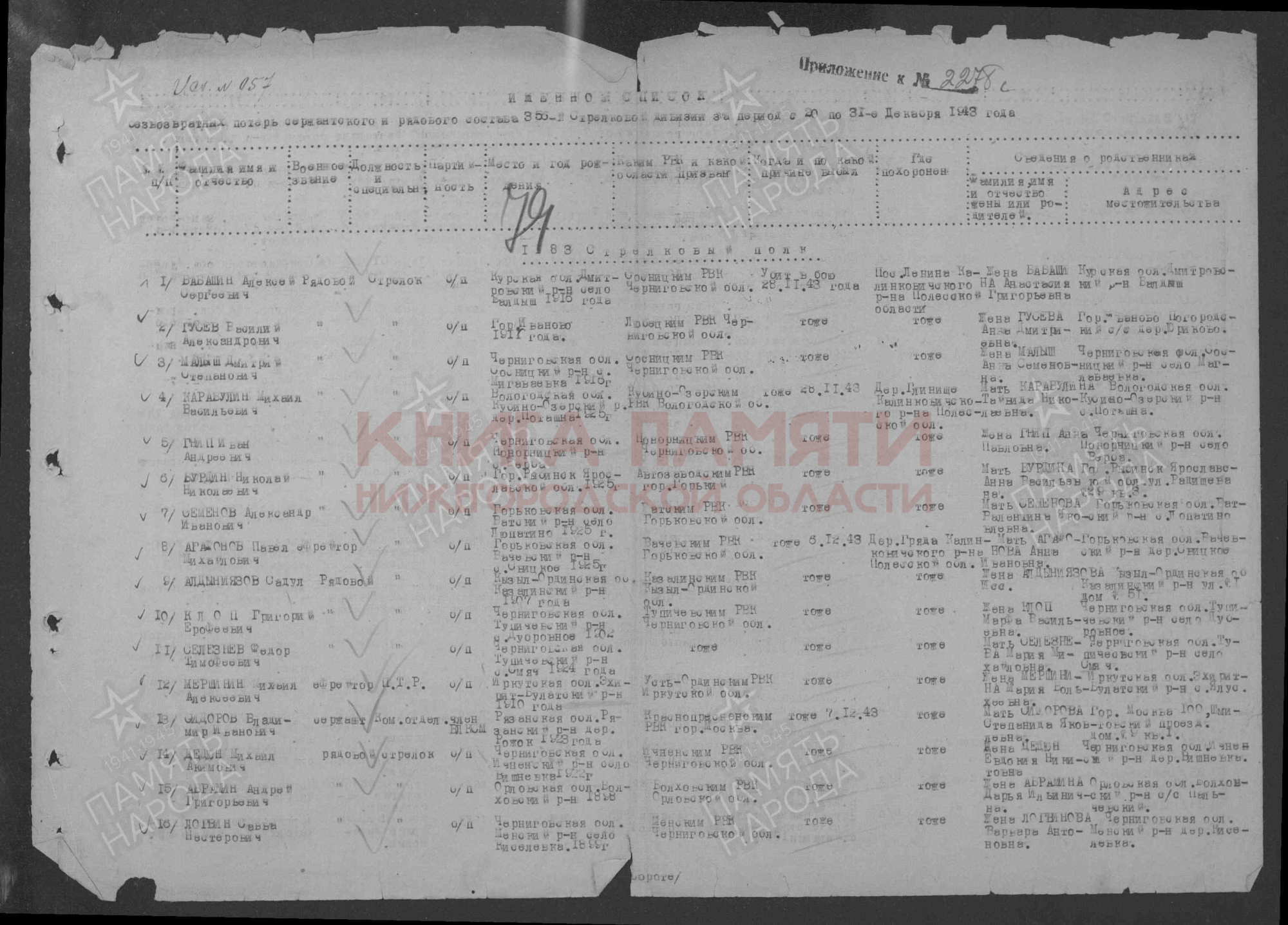 Погиб 25.08.1943. Место захоронения Белорусская ССР, Полесская обл., Калинковичский р-н, д. Глинище