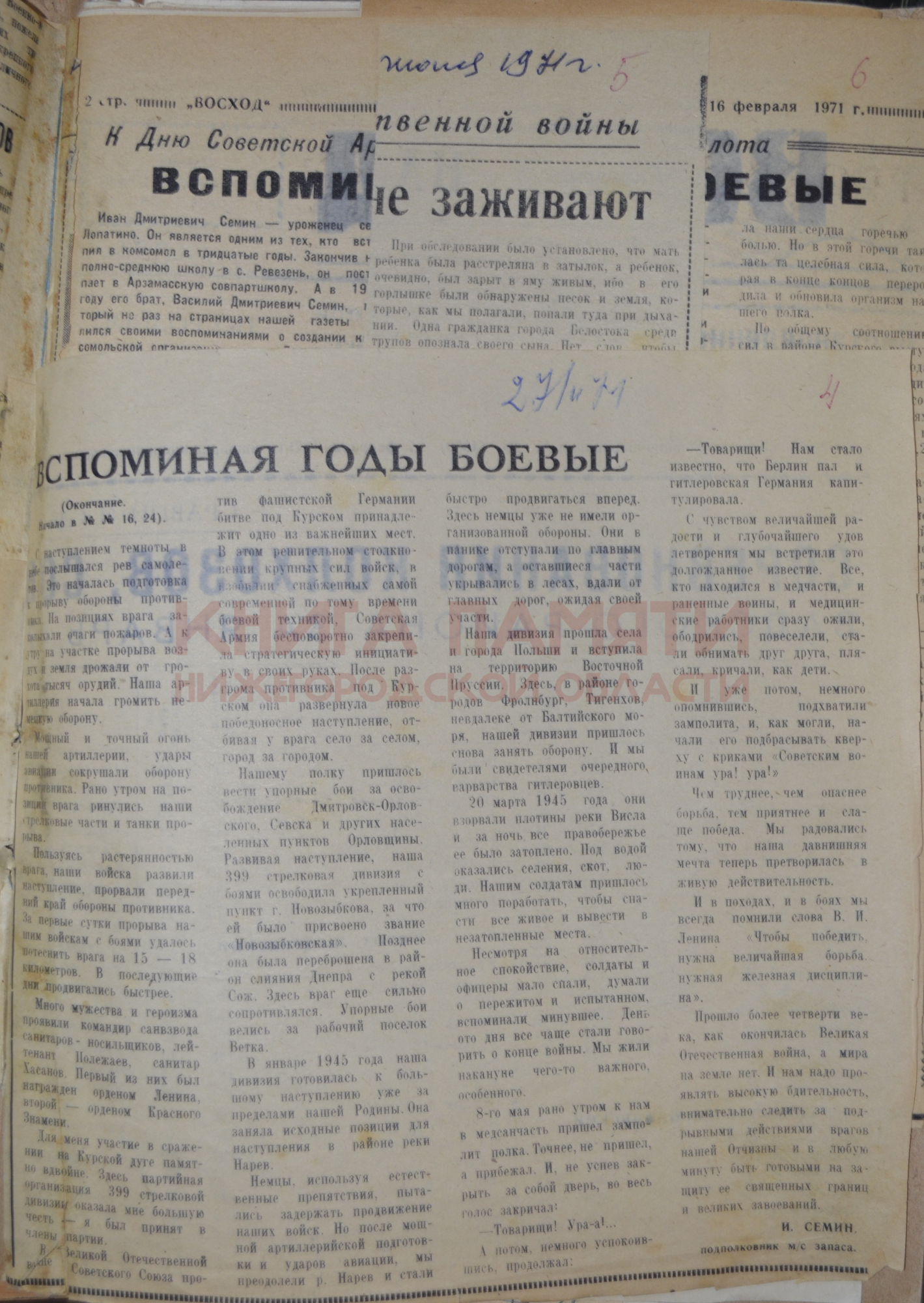 Сегодня публикуем воспоминания И. Д. Семина о его боевом пути в годы Великой Отечественной войны.