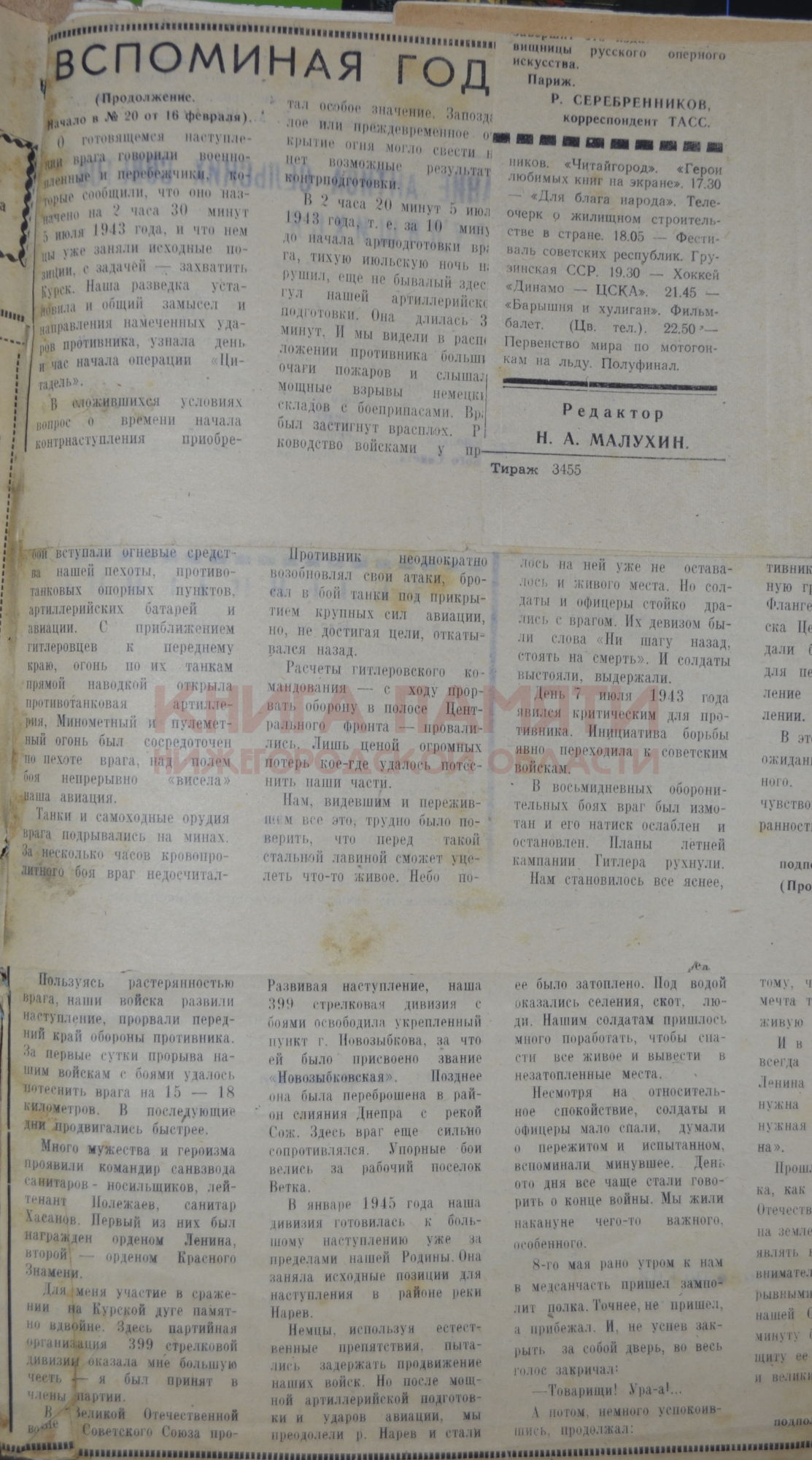Для меня участие в сражении на Курской дуге памятна вдвойне. Здесь партийная организация 399 стрелковой дивизии оказала мне большую честь – я был принят в члены партии.