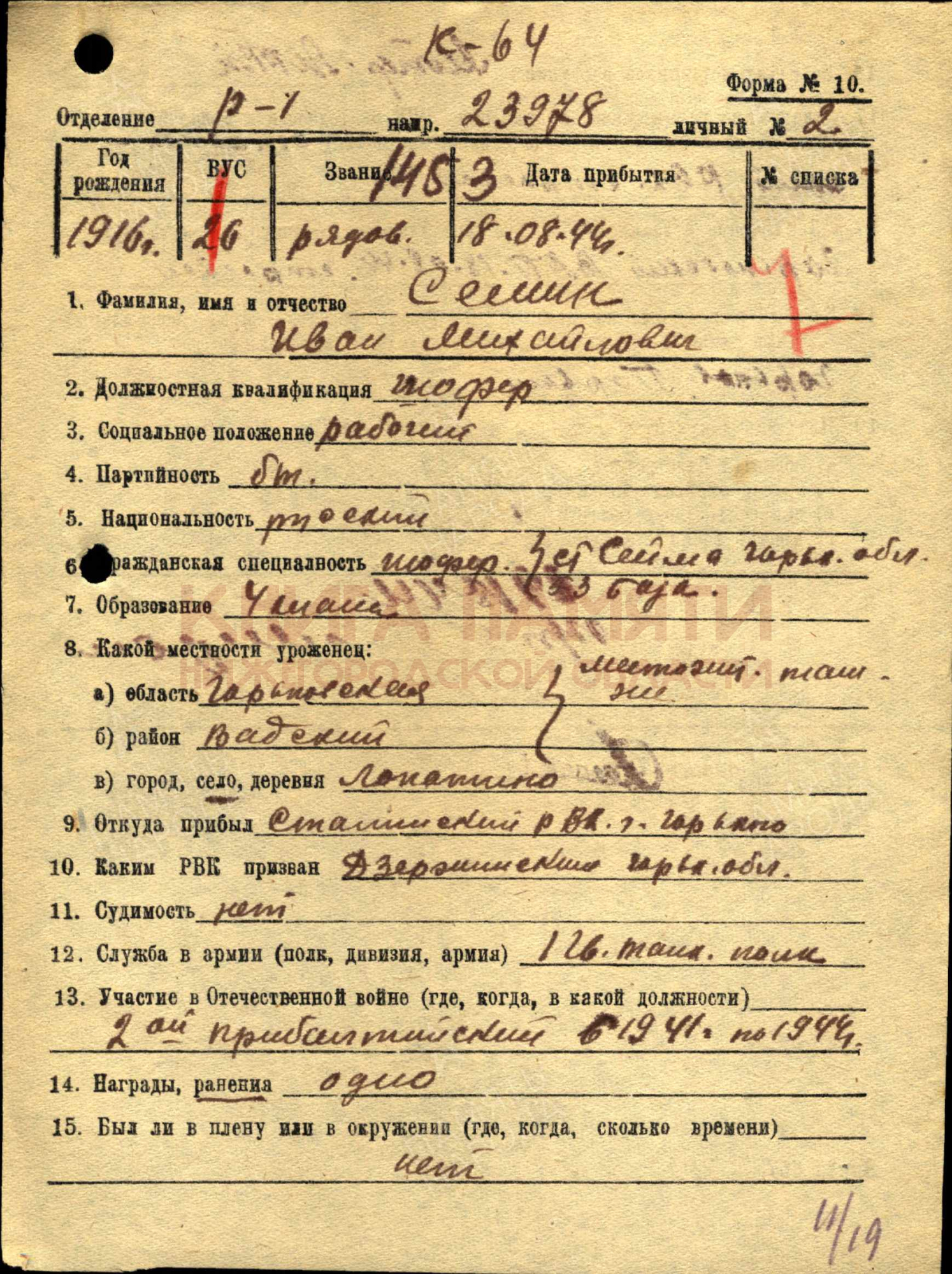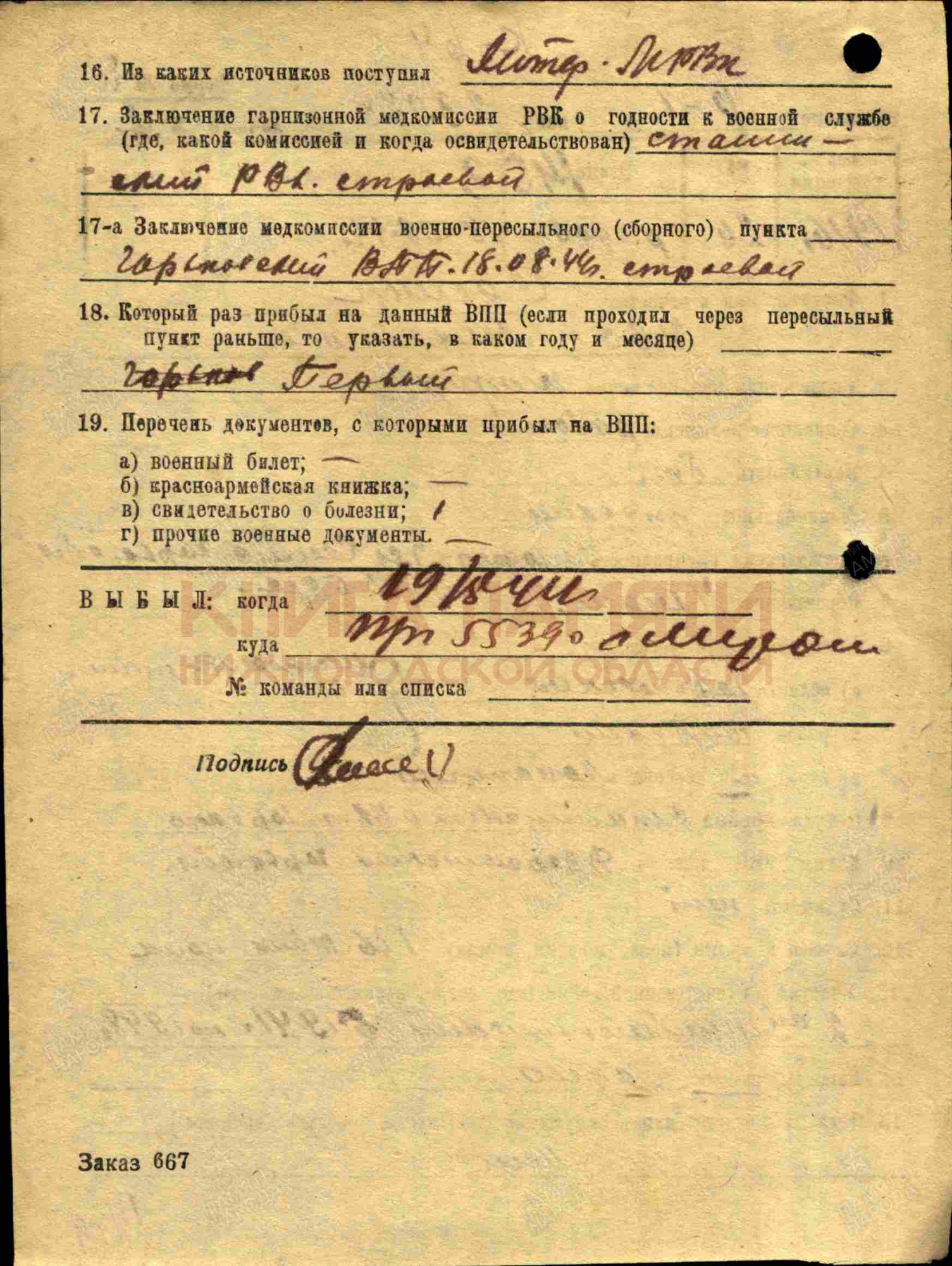 Горьковский военно-пересыльный пункт (он же Нижегородский), Горьковская обл., г. Горький
