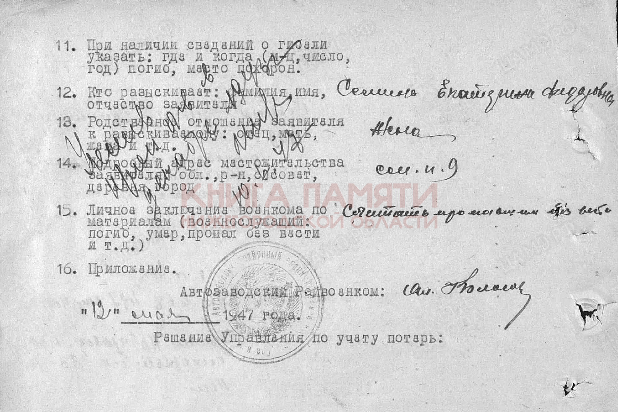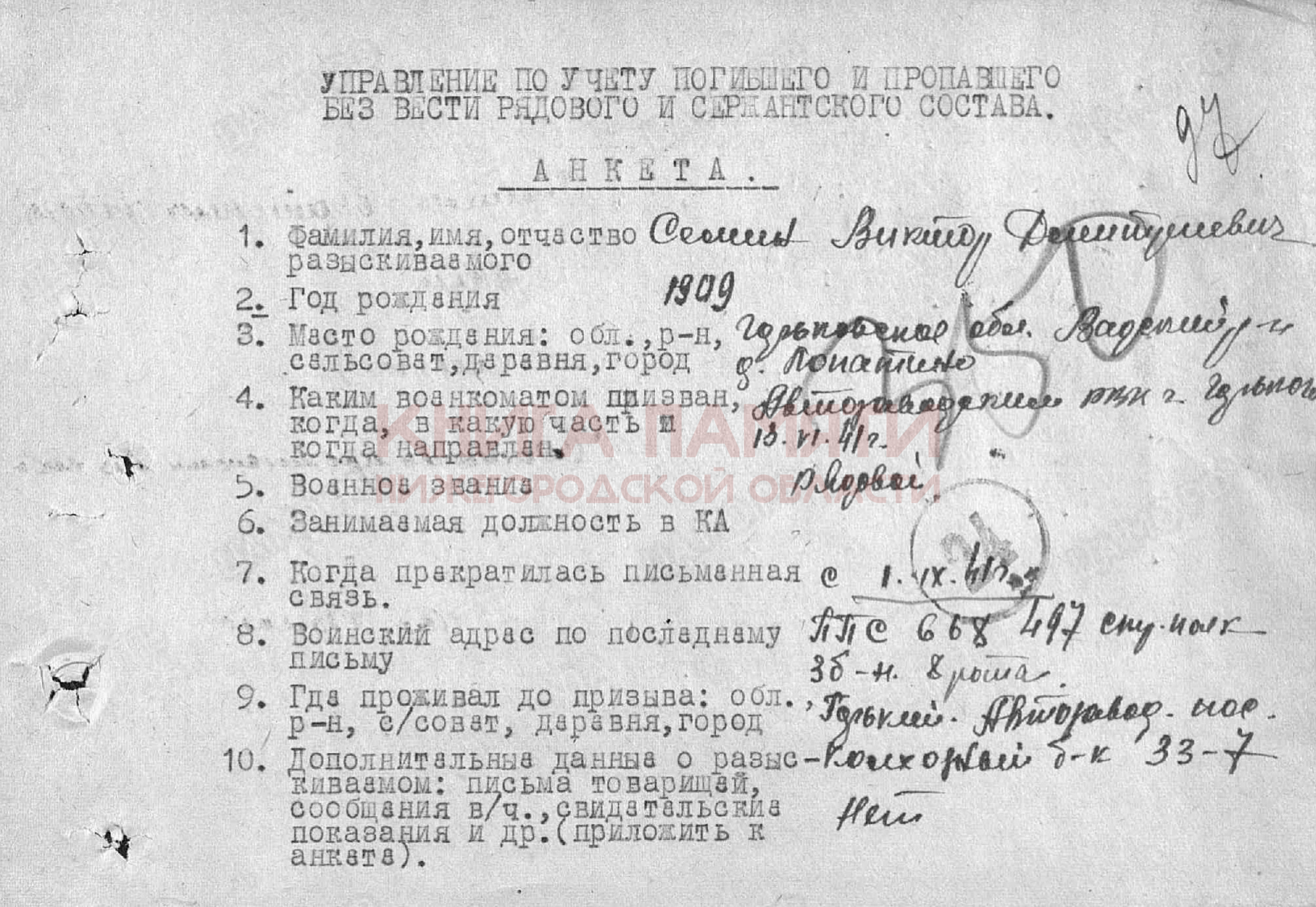 Пропал без вести в марте 1943 г.