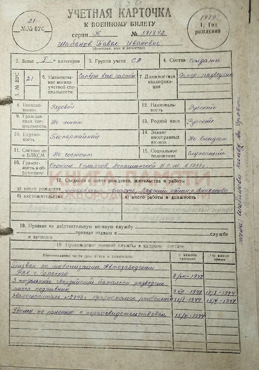 Сам Павел Иванович получил повестку в сорок втором. Сборы были короткими, не сумел из Горького, где работал в охране Автозавода, съездить домой, в Анненково, повидать родителей, попрощаться. Мать он уже больше не увидит - в сорок третьем она умерла.