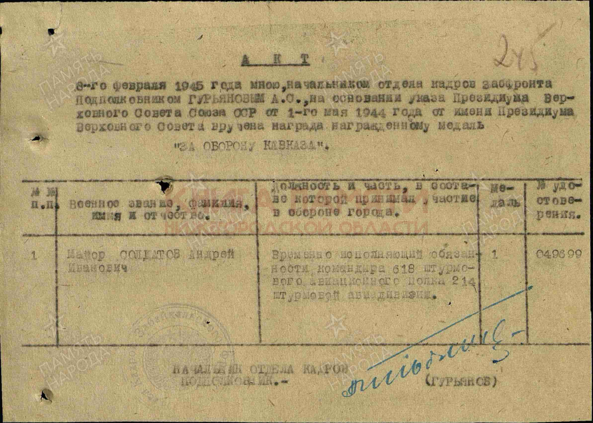 Медаль «За победу над Германией в Великой Отечественной войне 1941–1945 гг.» (2);