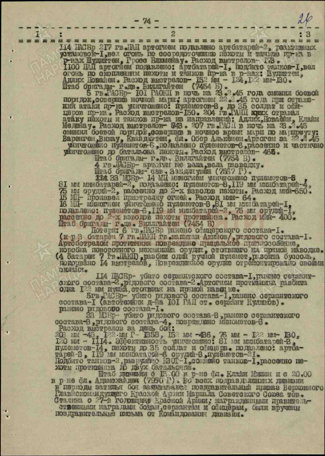 Дата выбытия 01.03.1945. Причина выбытия: эвакуирован в тыл. эвакуационный госпиталь 3501