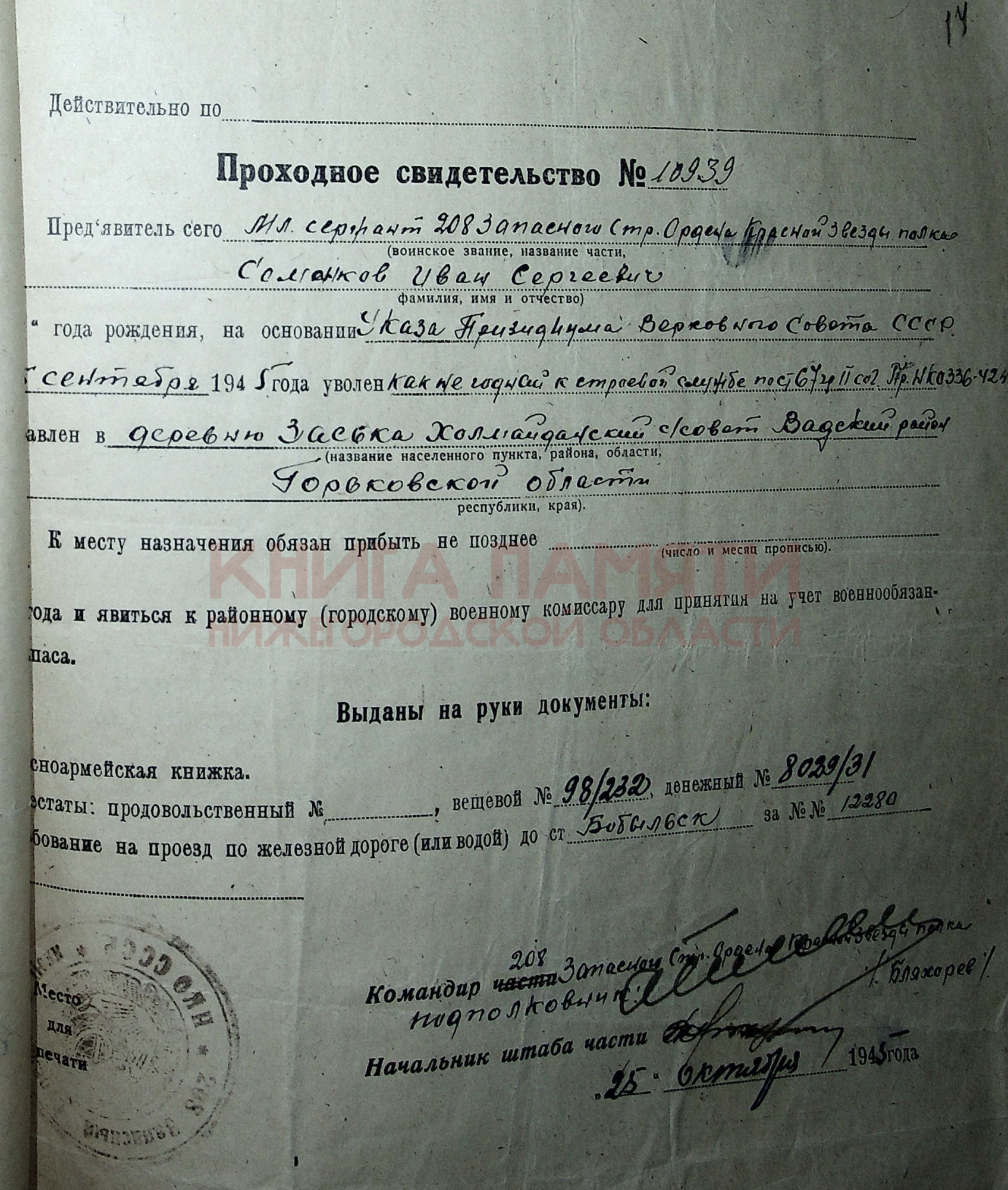 208 запасной стрелковый полк; Арзамасский РВК, Горьковская обл., Арзамасский р-н;