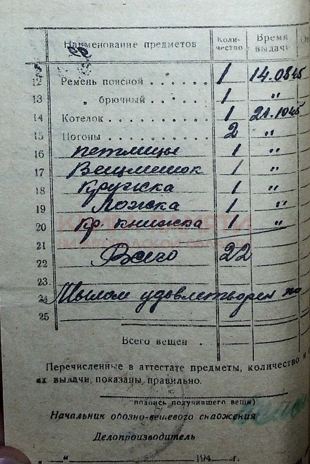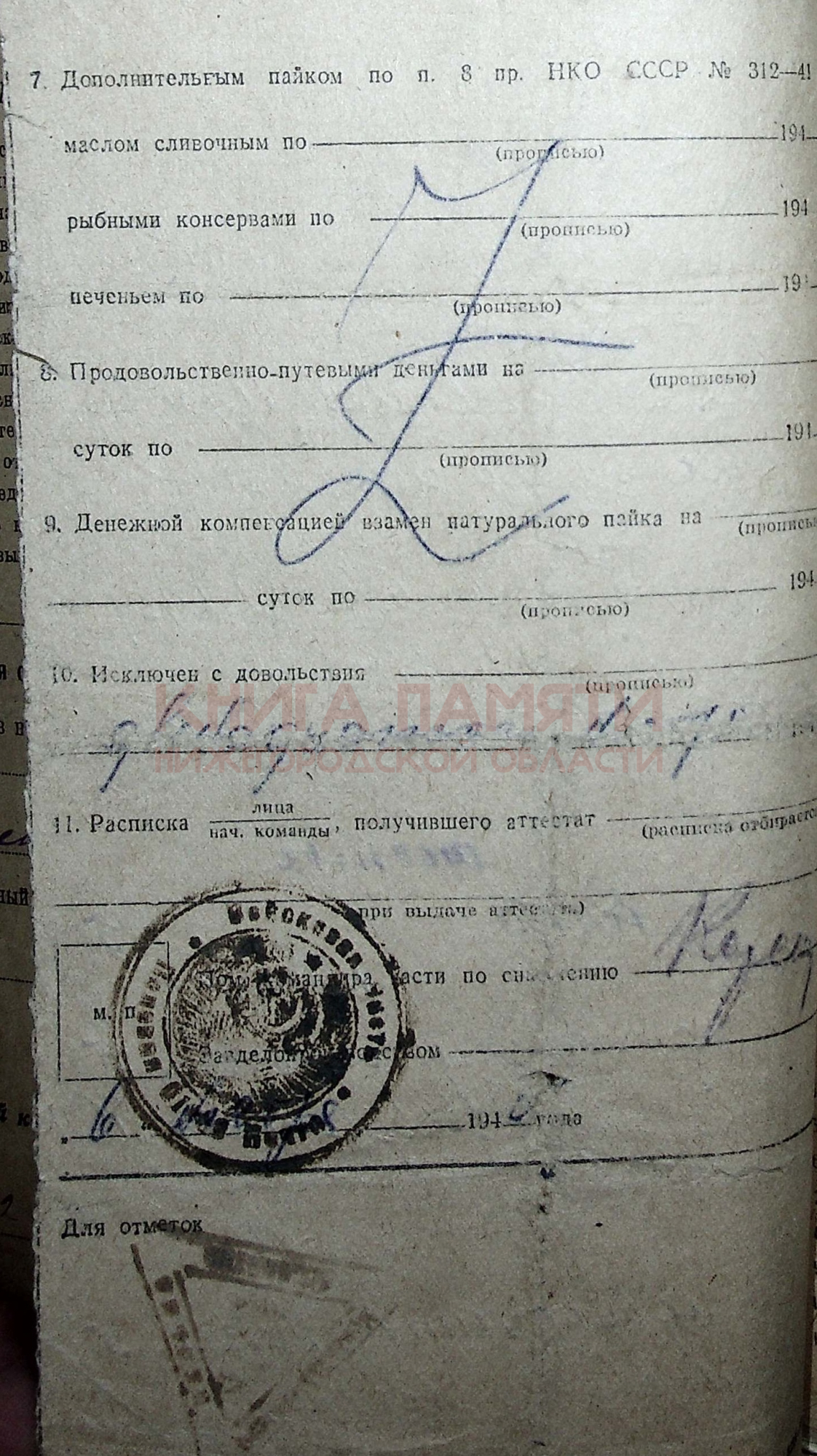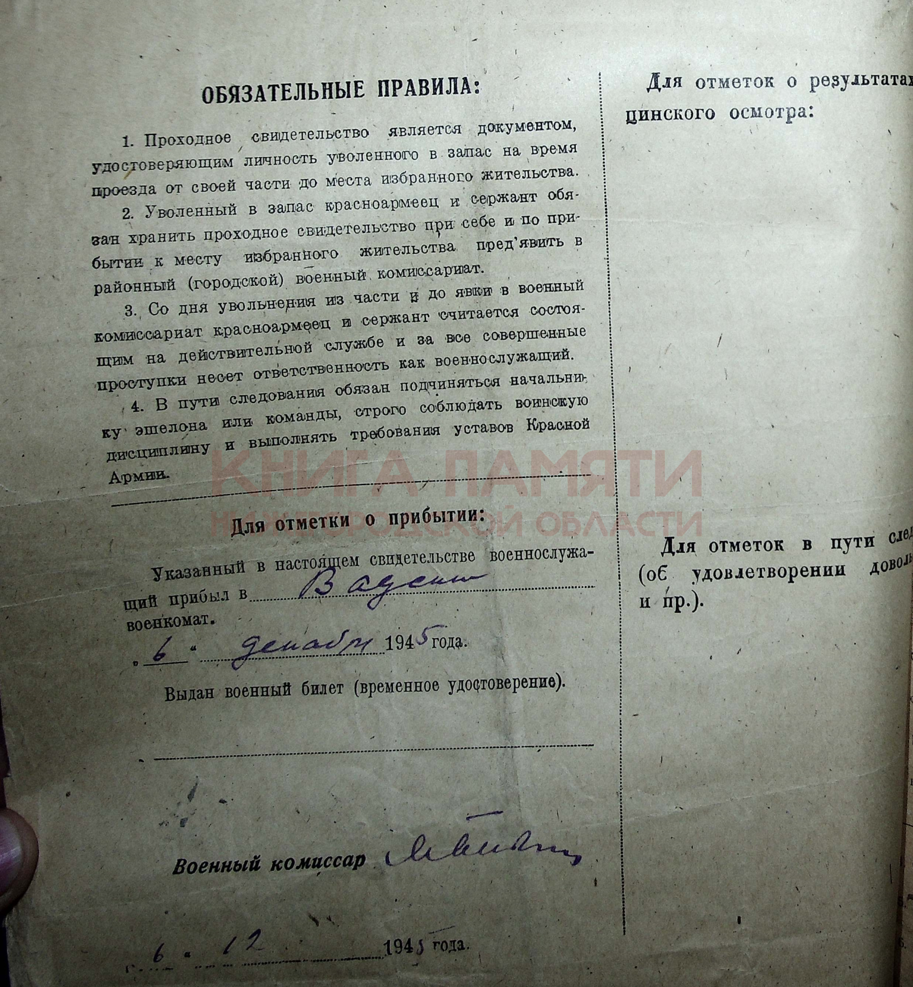 В сентябре 1945 уволен (демобилизован) как негодный к строевой службе.