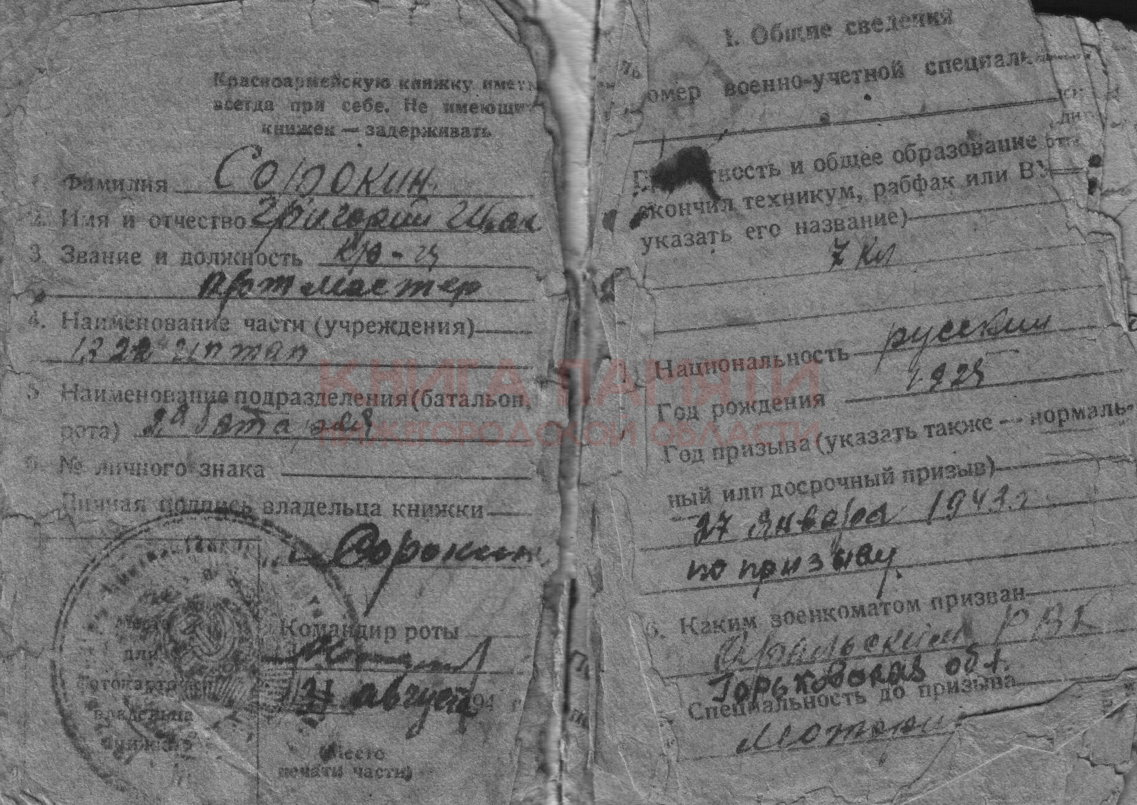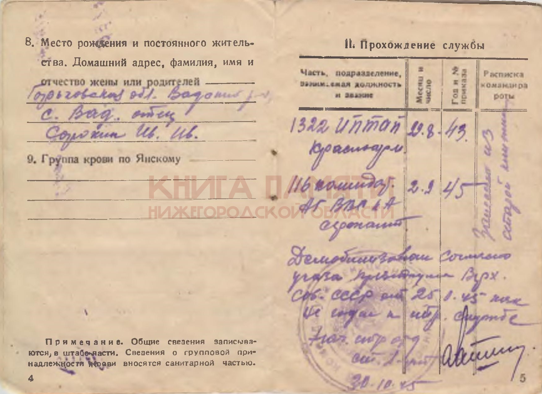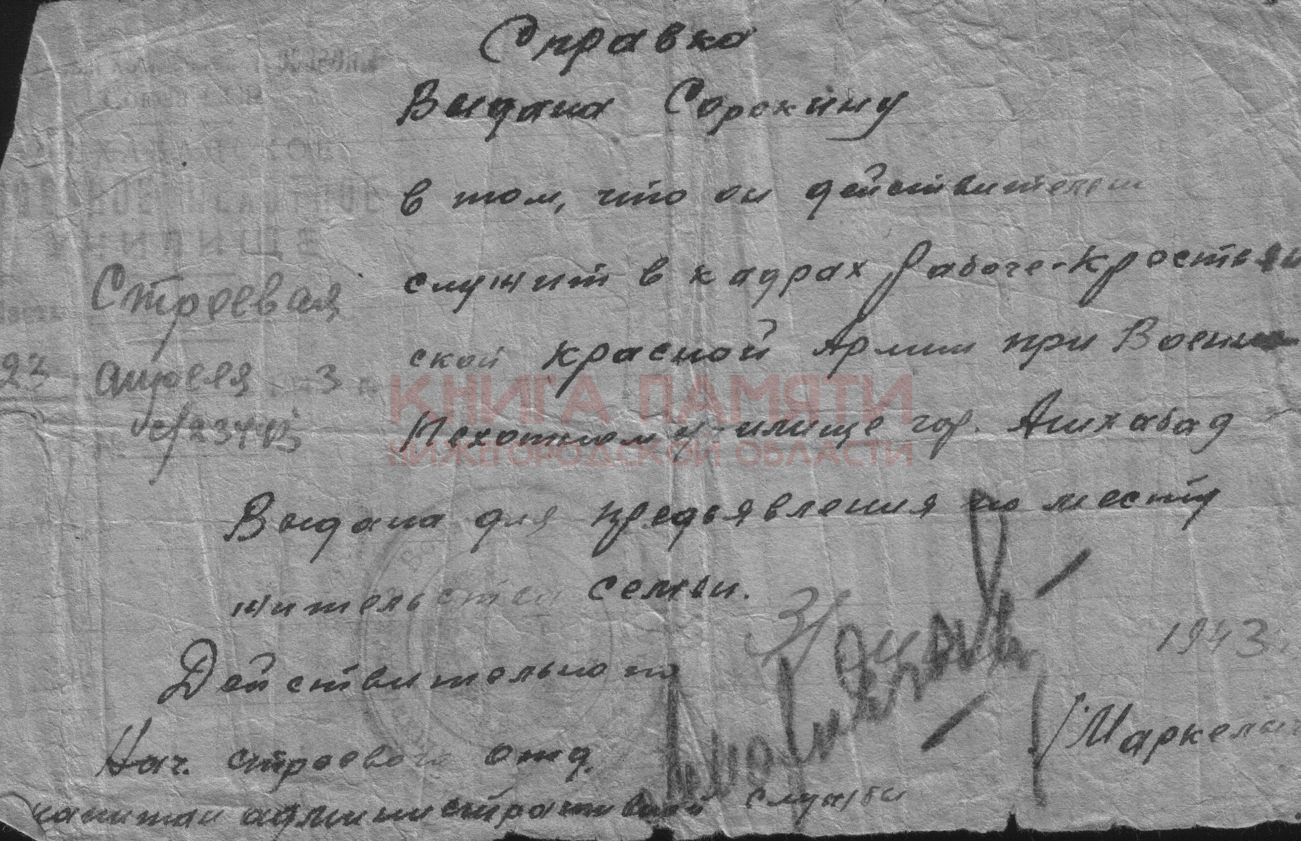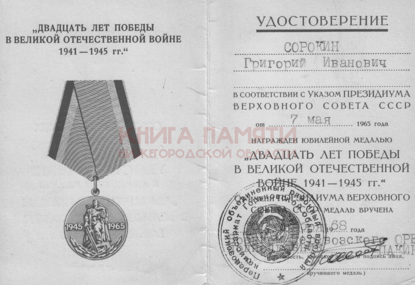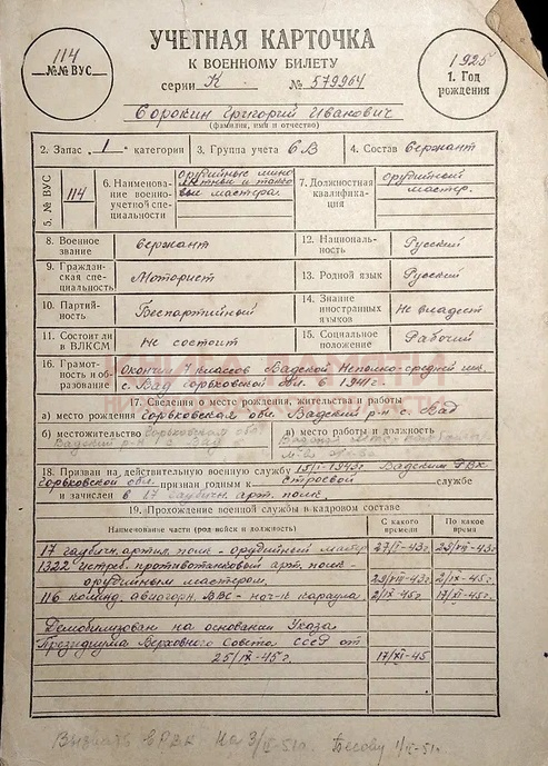 Сорокин Григорий Иванович родился 10 января 1925г в с. Вад Вадского района Горьковской области в семье крестьян Сорокина Ивана Ивановича 1900г. рожд. и Сорокиной Екатерины Васильевны 1900г. рожд.