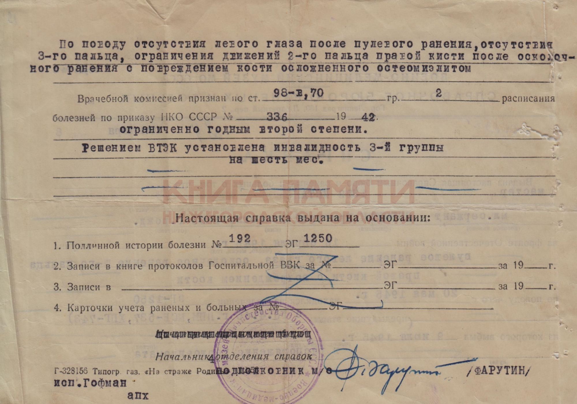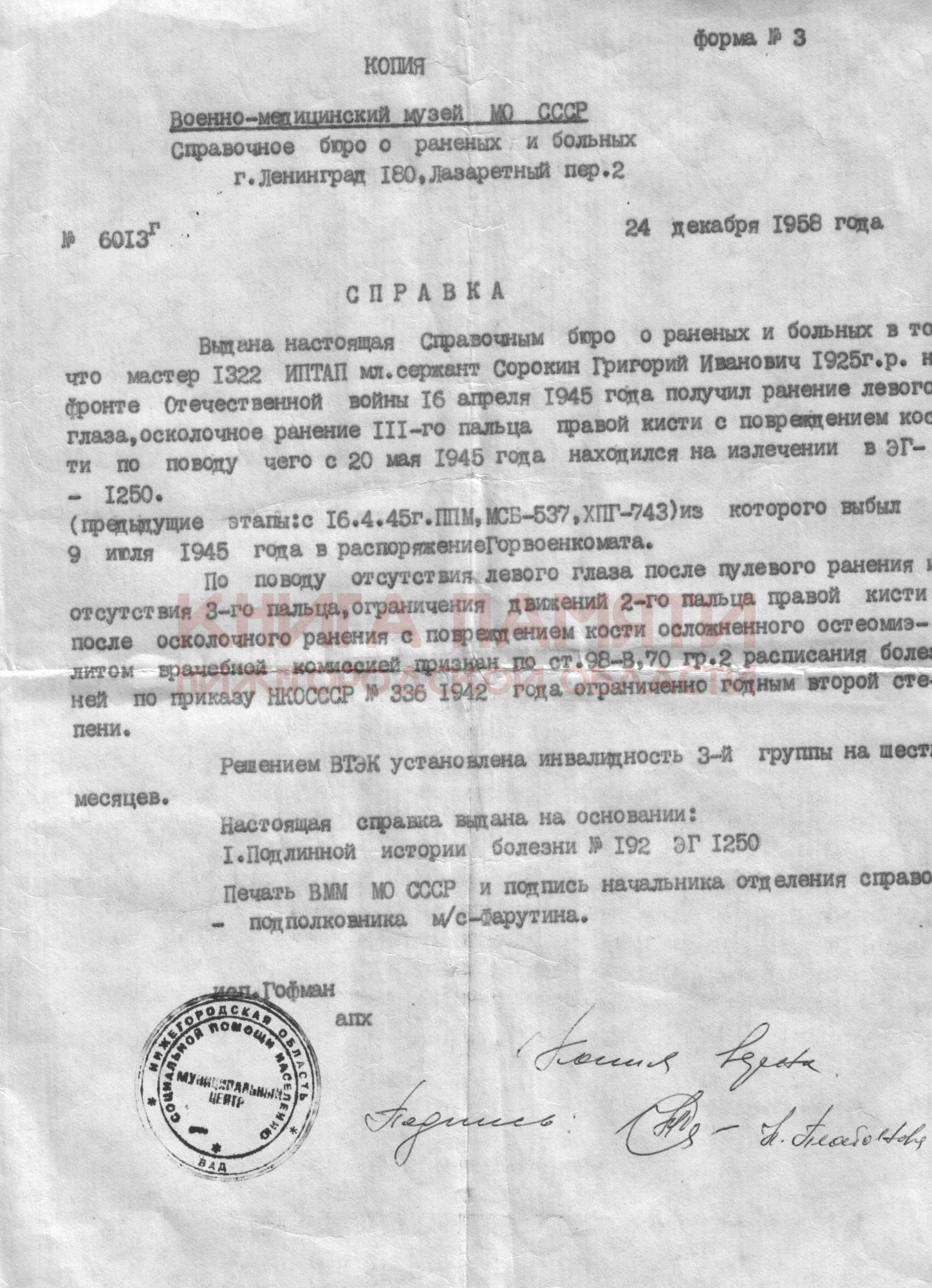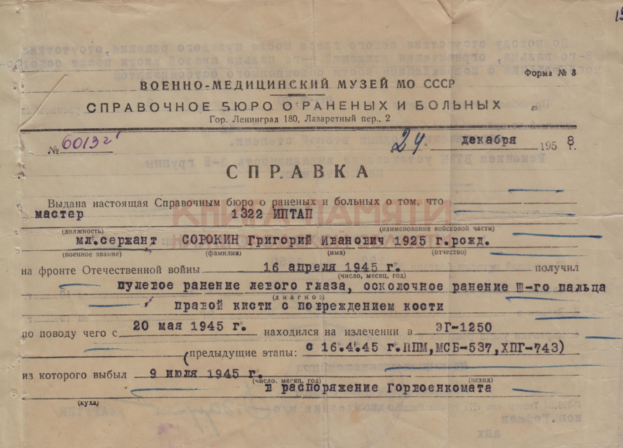 Он находился в 120 километрах от передовой. Григорий Иванович в пути недоумевал, почему его отправили именно в госпиталь. И только по прибытию в него с ужасом понял, что лишился глаза.