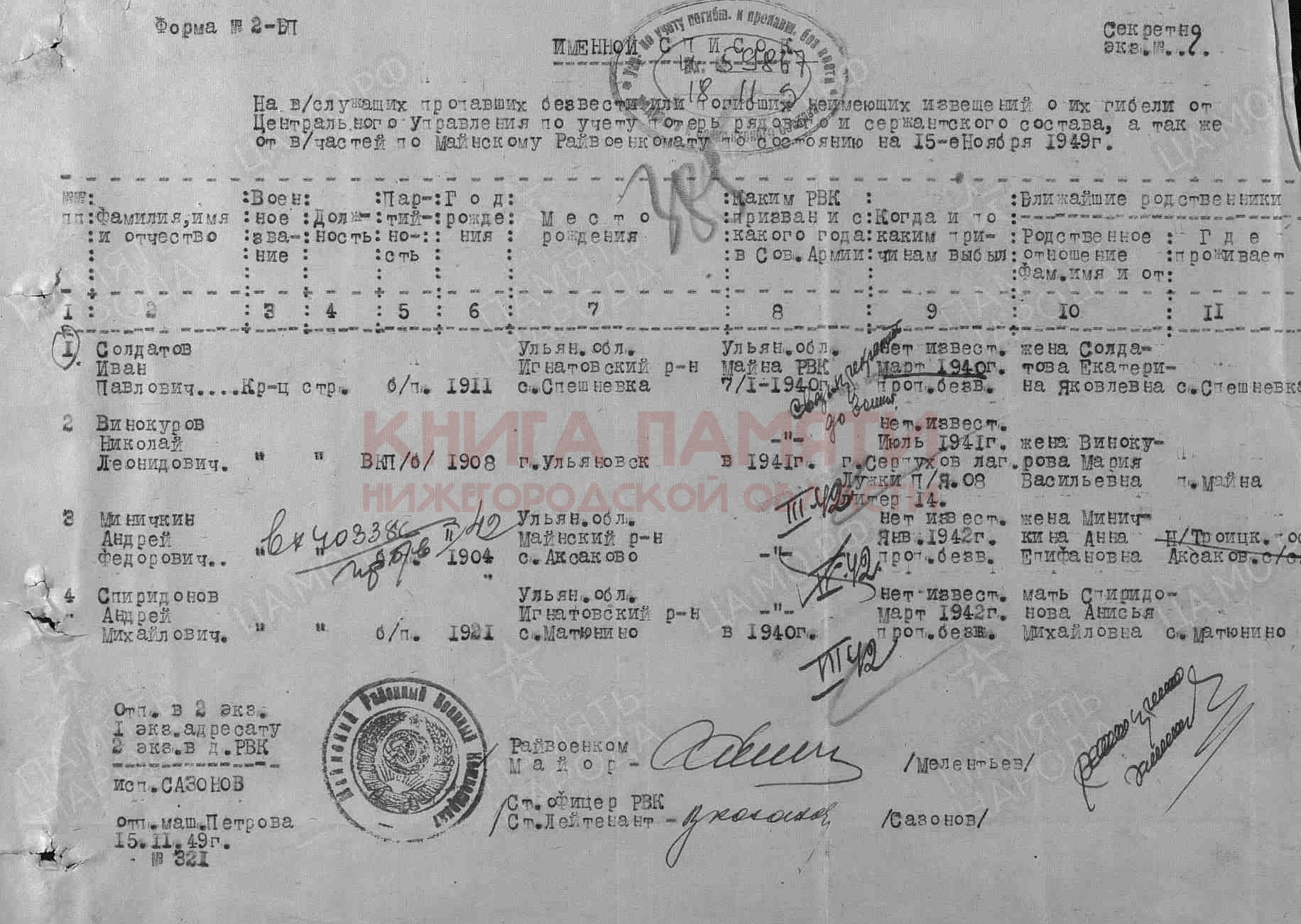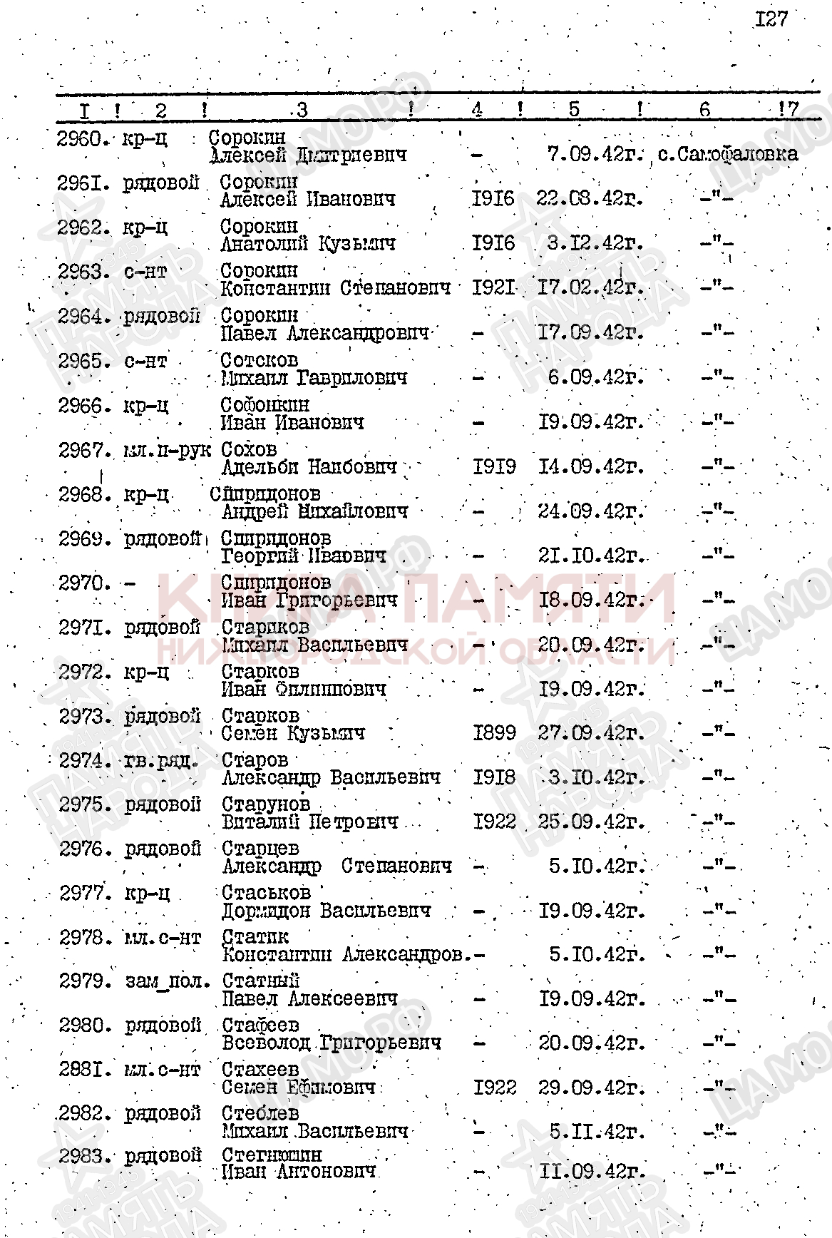 Место захоронения: Городищенский р-н, п. Самофаловка, братская могила ; Городищенский р-н, п. Самофаловка ; ст. Котлубань, Балка Лиманная, Городищенского р-на Волгоградской обл. ; Сталинградская обл., Городищенский р-н, ст. Котлубань, южнее, балка Лиманная: 90153106