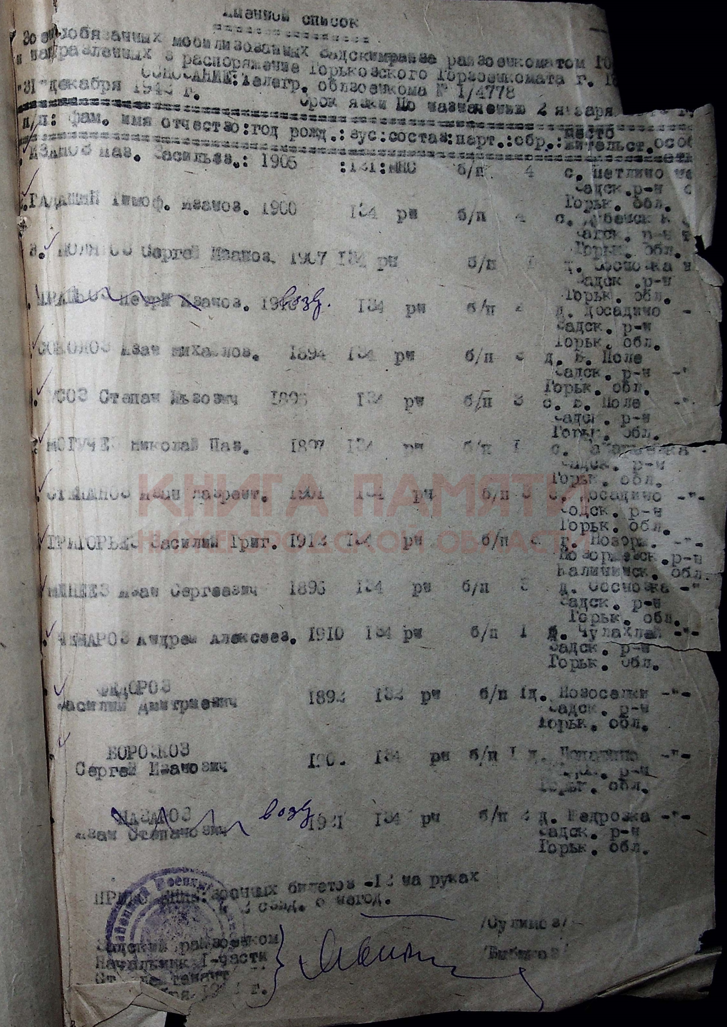 322 сд. Горьковский военно-пересыльный пункт (он же Нижегородский), Горьковская обл., г. Горький