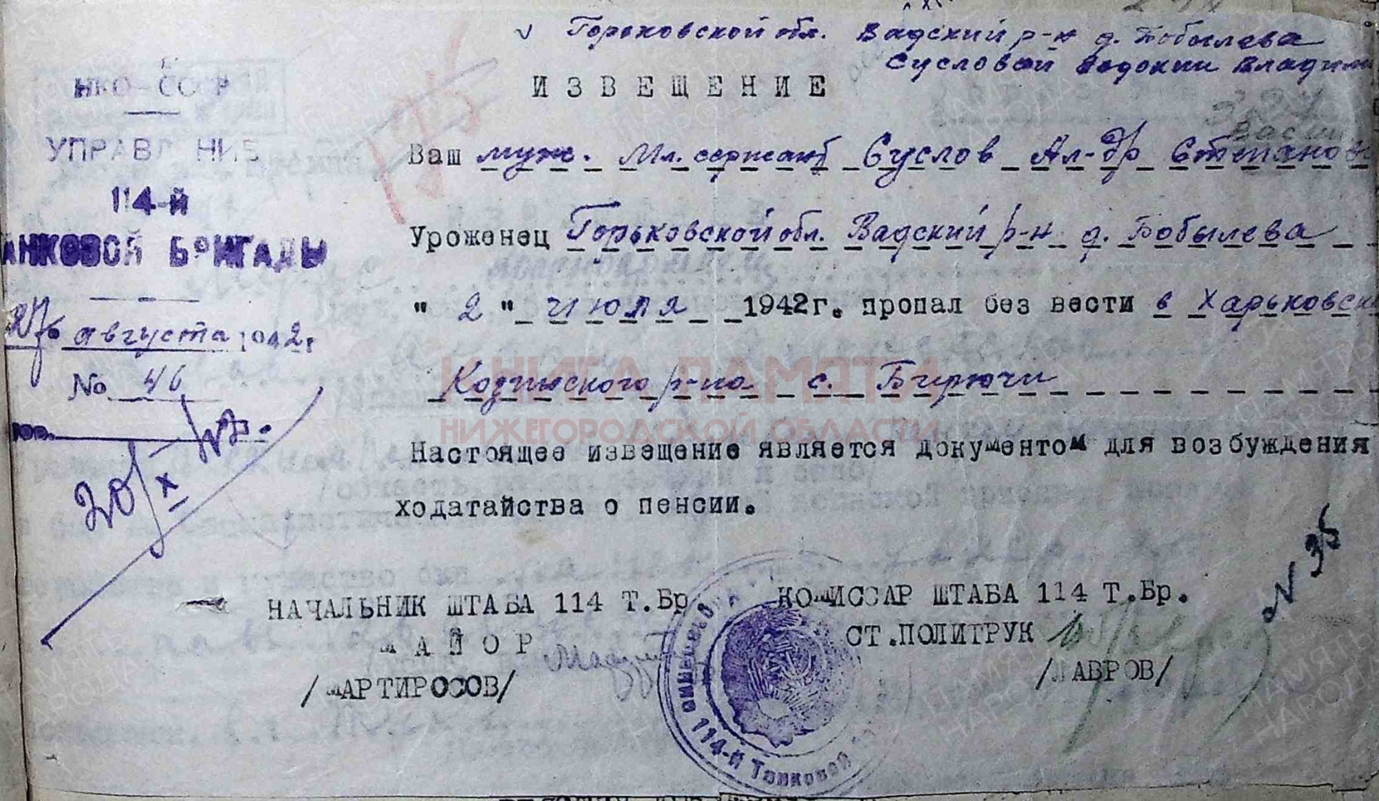 Пропал без вести в 1942 г