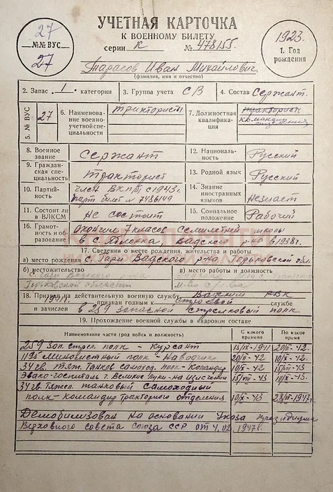 Демобилизован 29.03.1947 г.