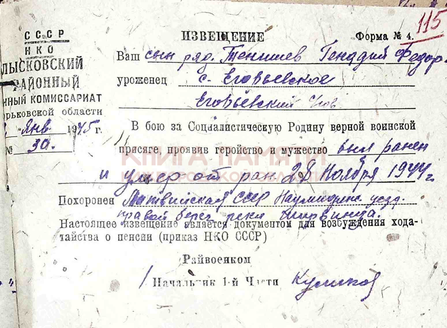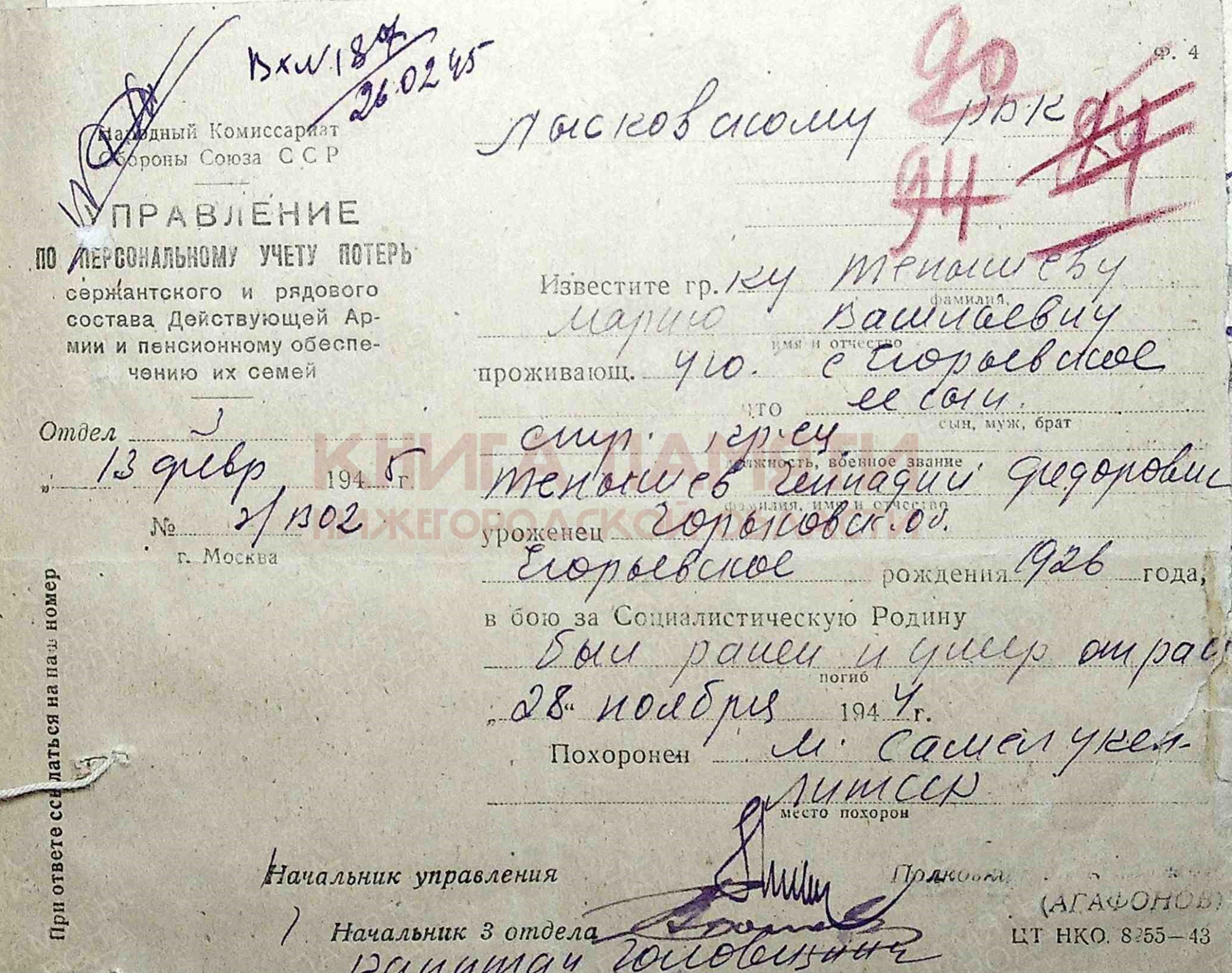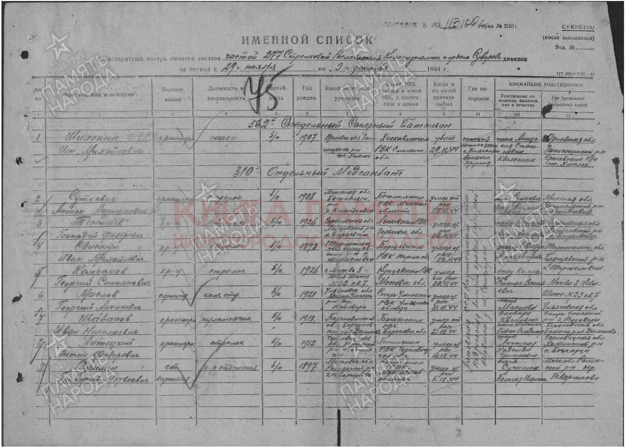 умер от ран 28.11.1944