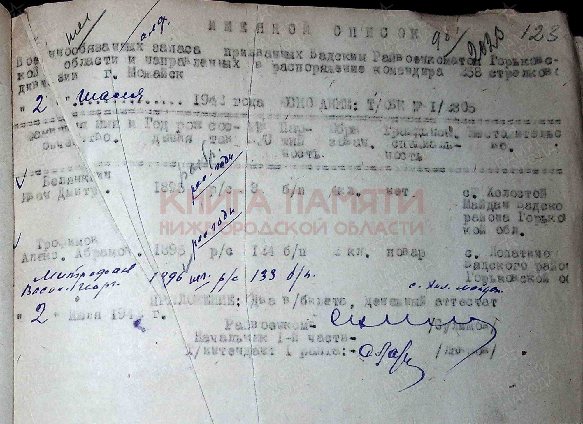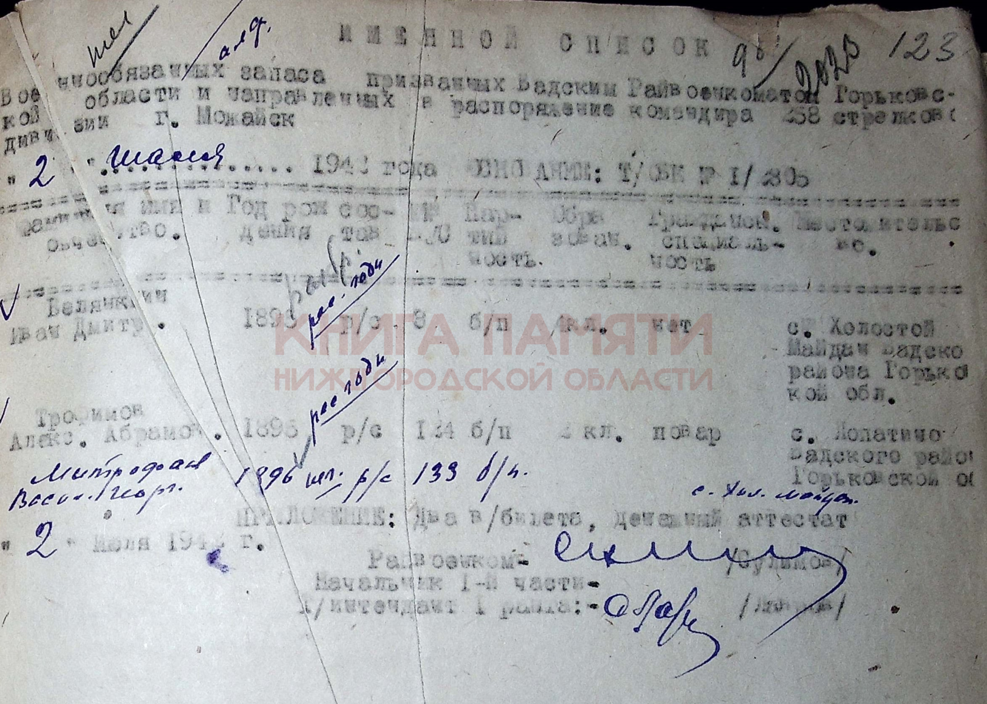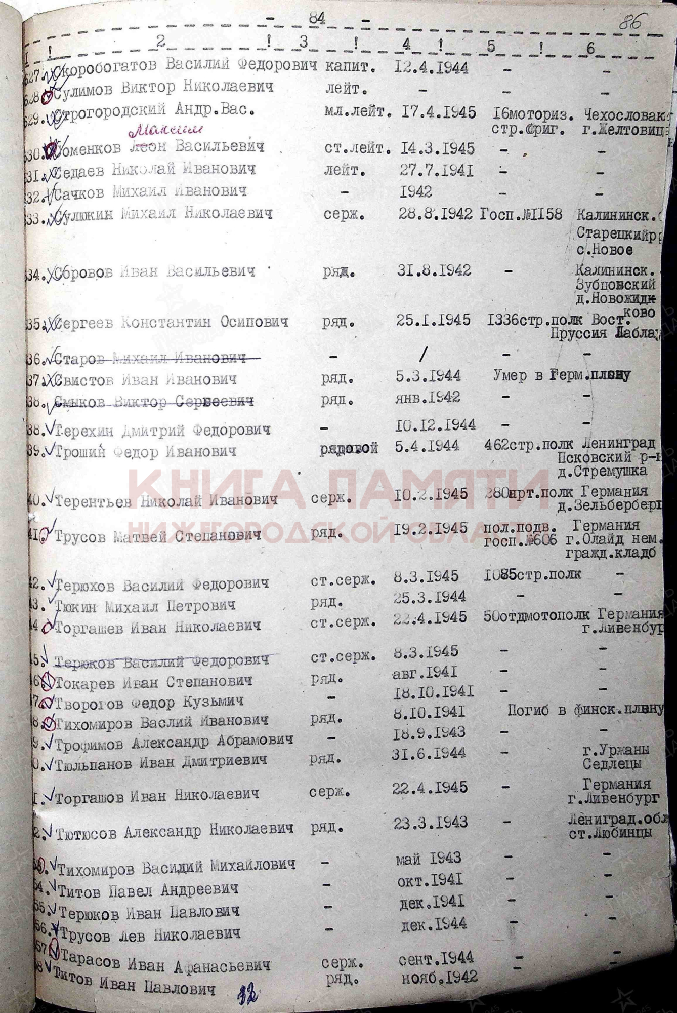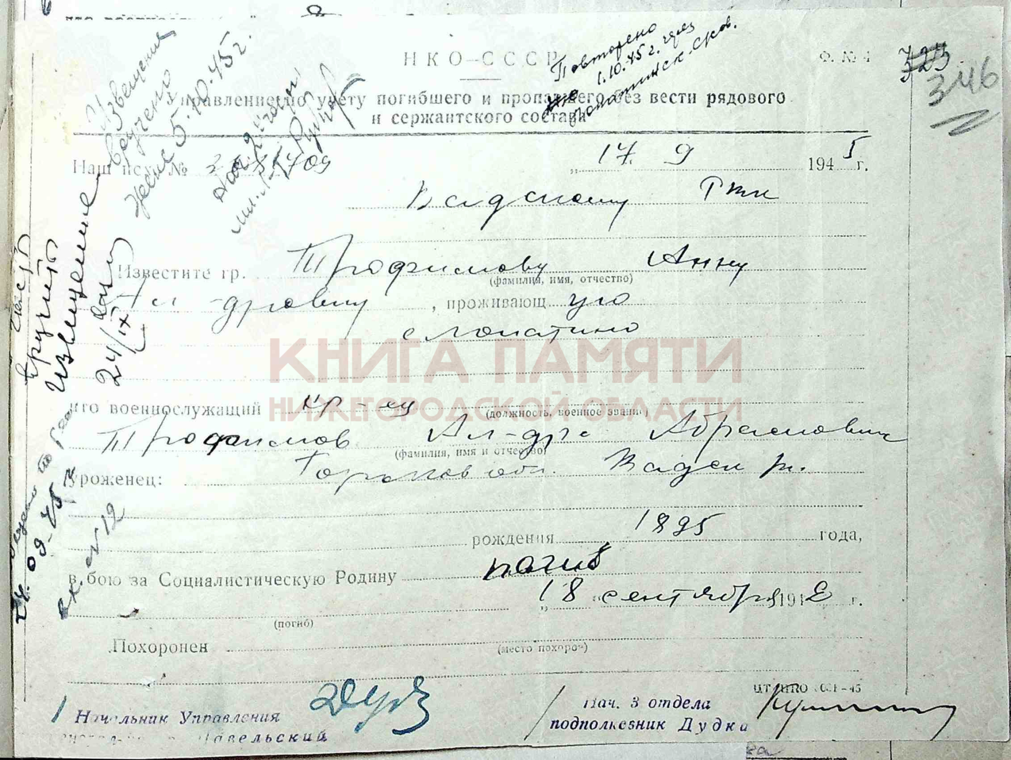Погиб в бою 18 сент. 1942 Место захоронения - Сталинградская обл., Городищенский р-н, Самофаловский с/с, выс. 118,1, южные скаты
