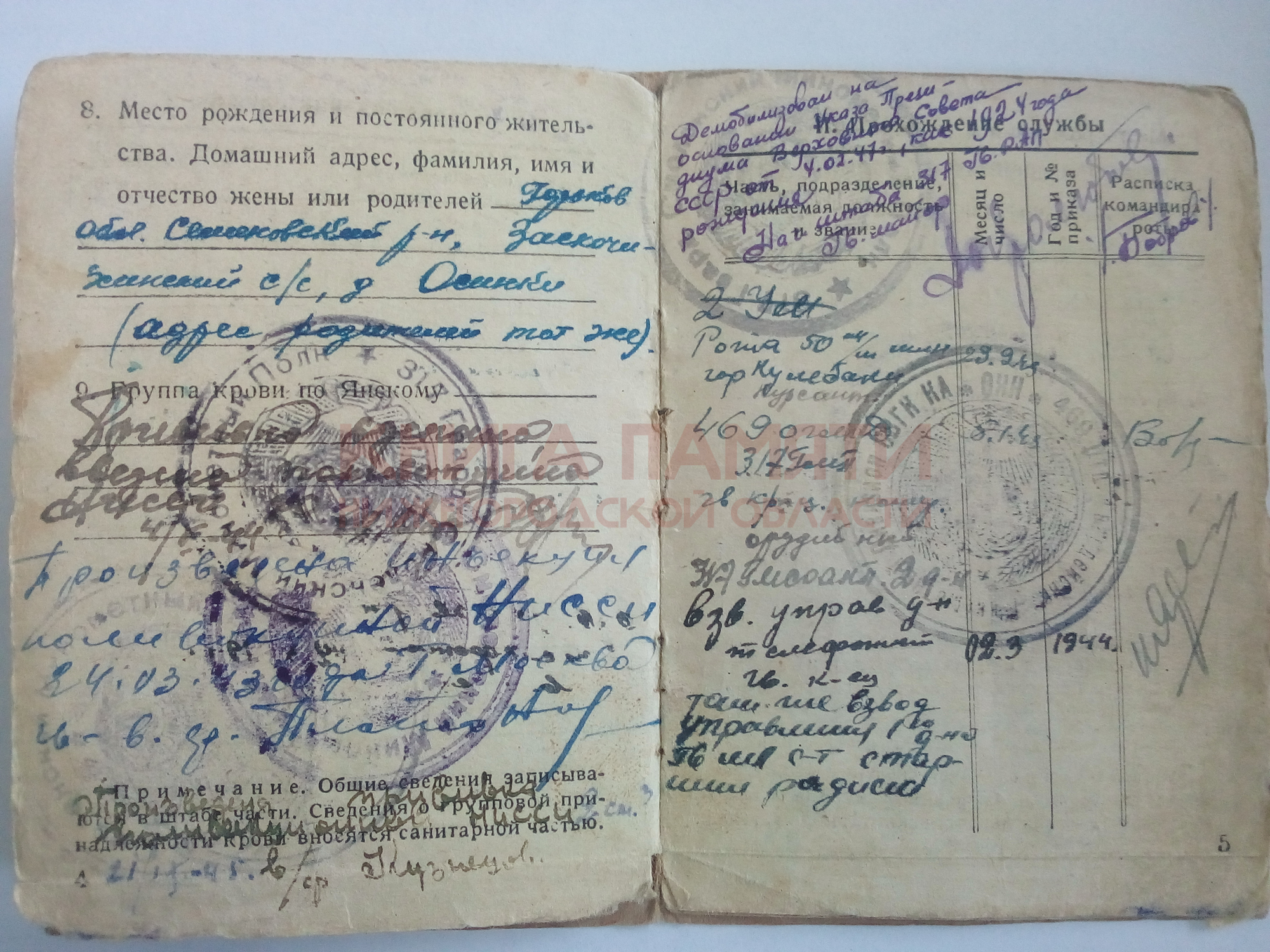 Подвиг, за который получил медаль: 14 июля 1944 г. под интенсивным обстрелом противника, рискуя жизнью, первым переправился на западный берег р. Неман и обеспечил связь дивизиона с поддерживаемыми стрелковыми частями.