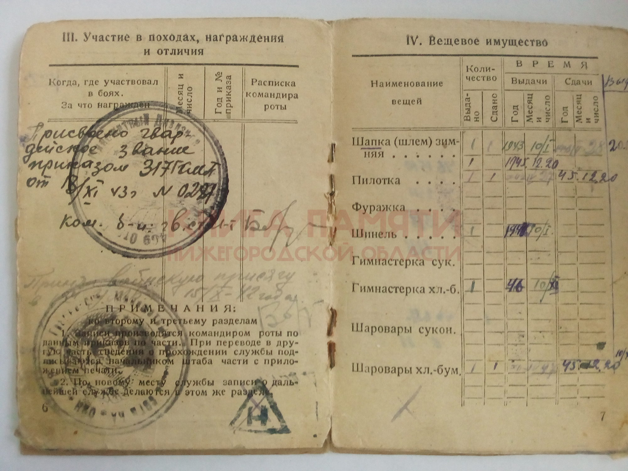 В августе 1942 г. был разведчиком в учебно-минометной бригаде. В сентябре 1942 был минометчиком, в декабре 1942 г. - радиотелеграфистом.
