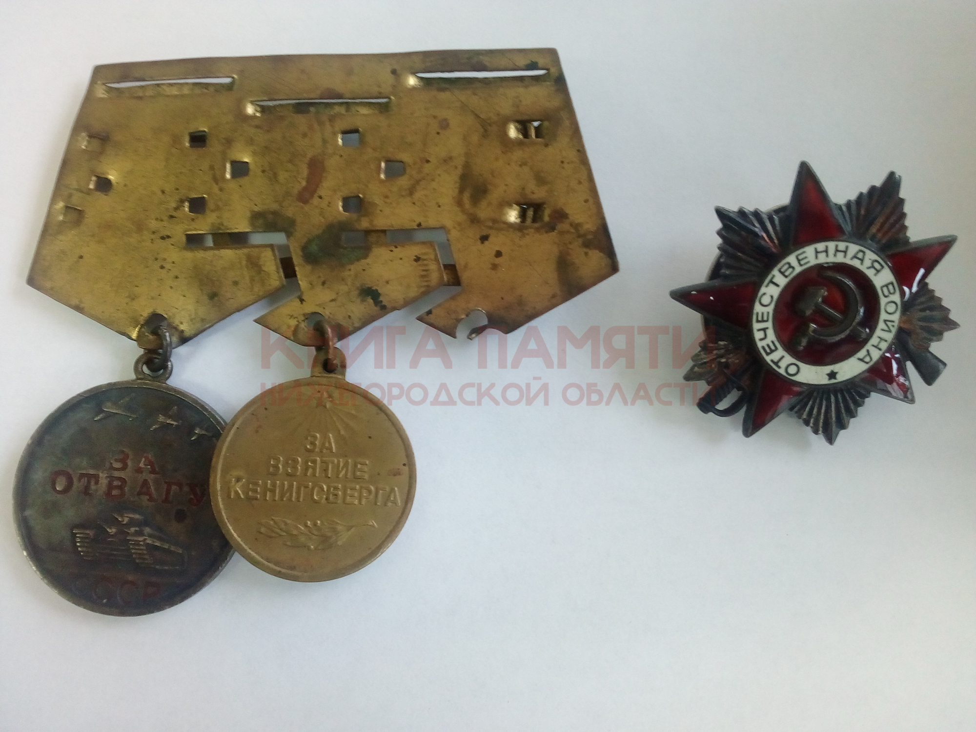 Орден "Великой Отечественной войны II степени"; медали "За отвагу", "За взятие Кёнигсберга"