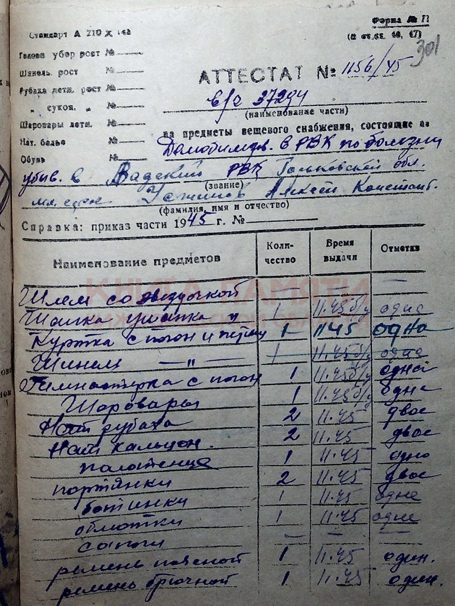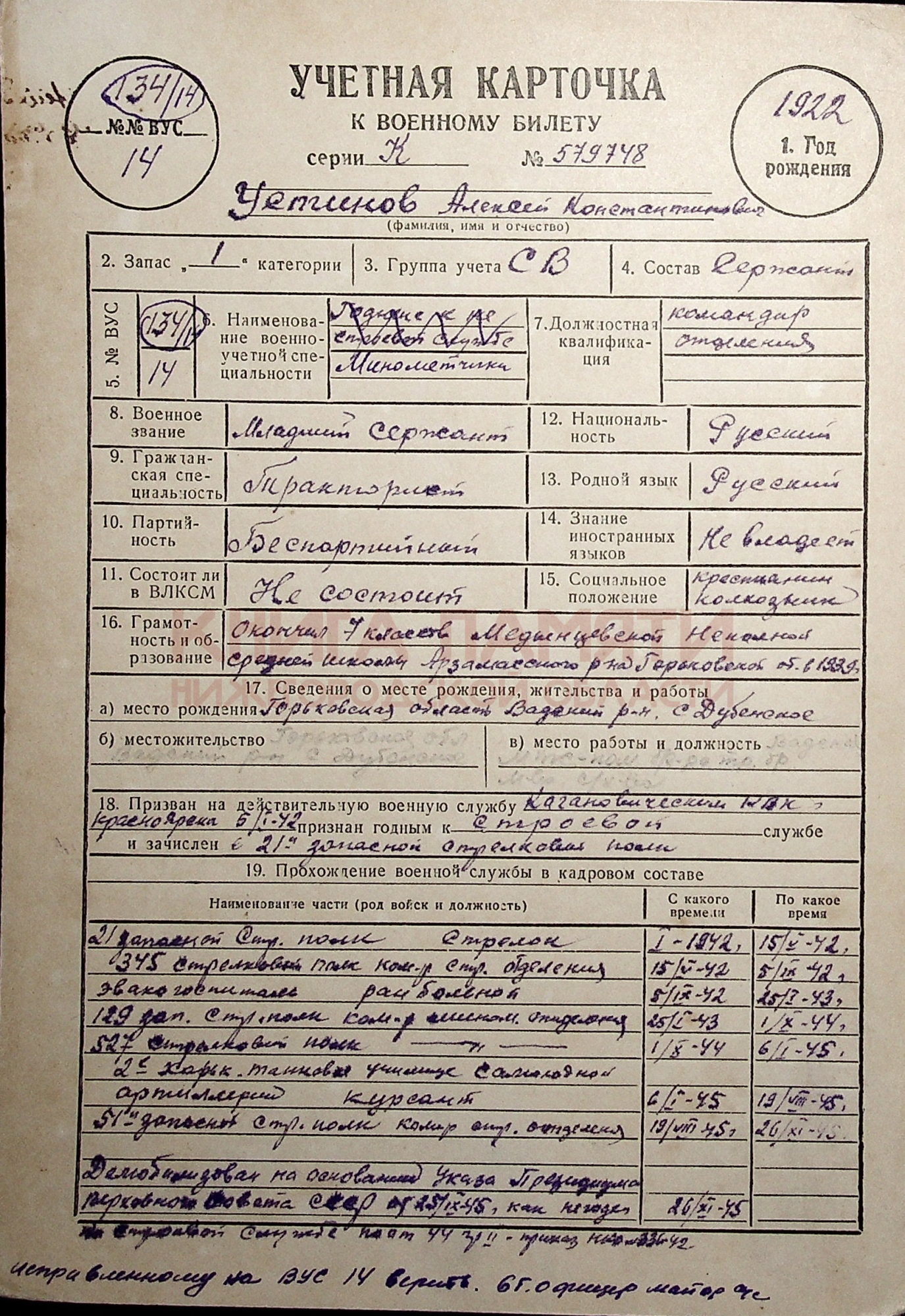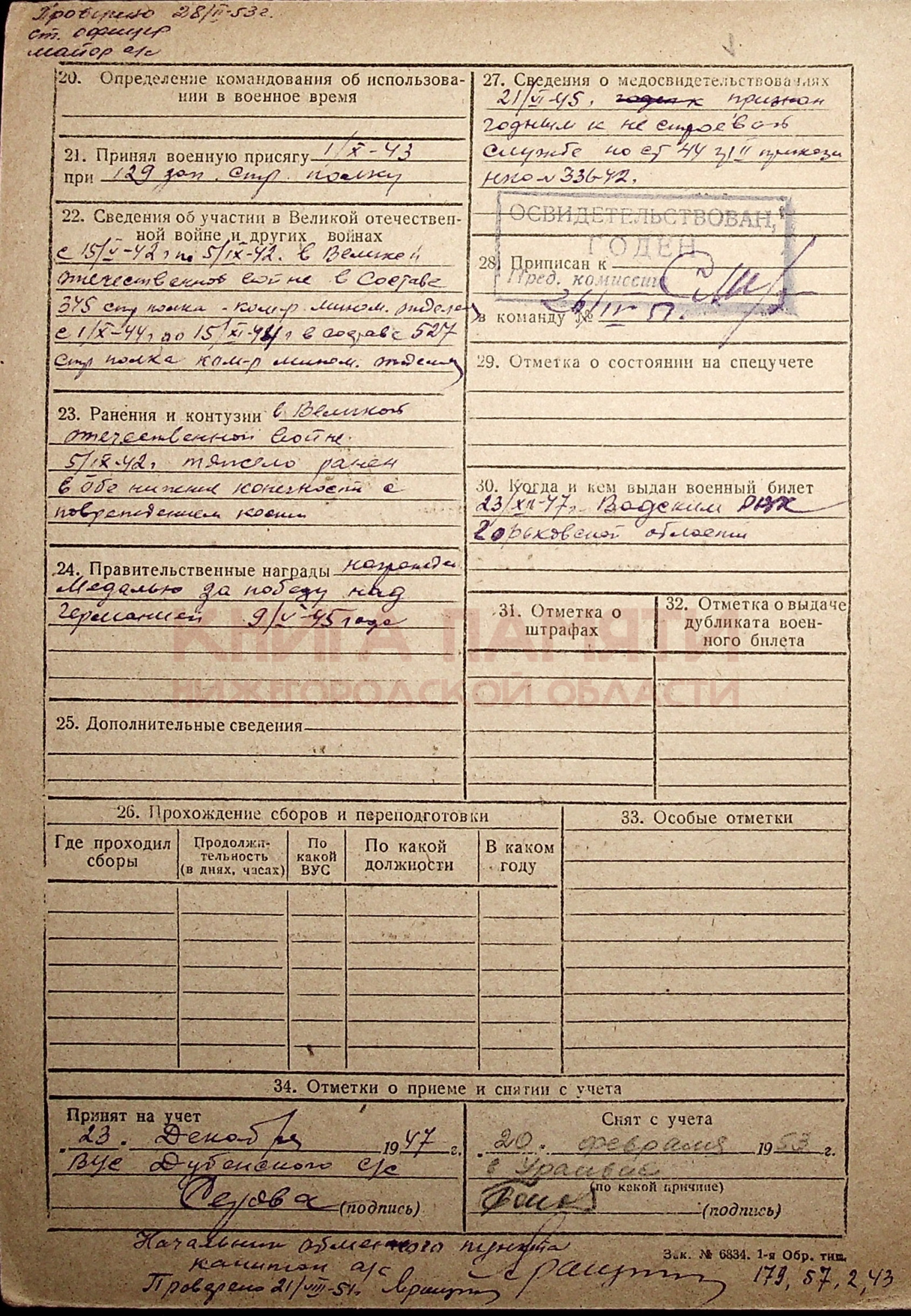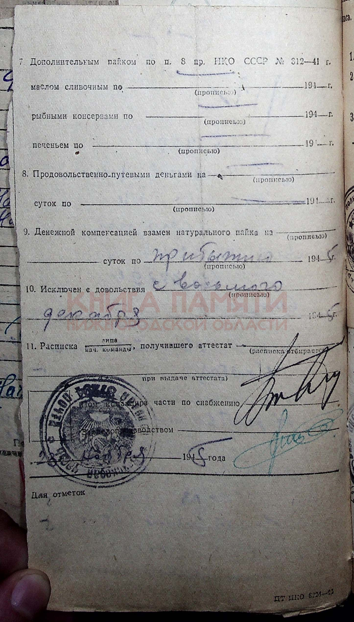 Демобилизован в 1945 г.