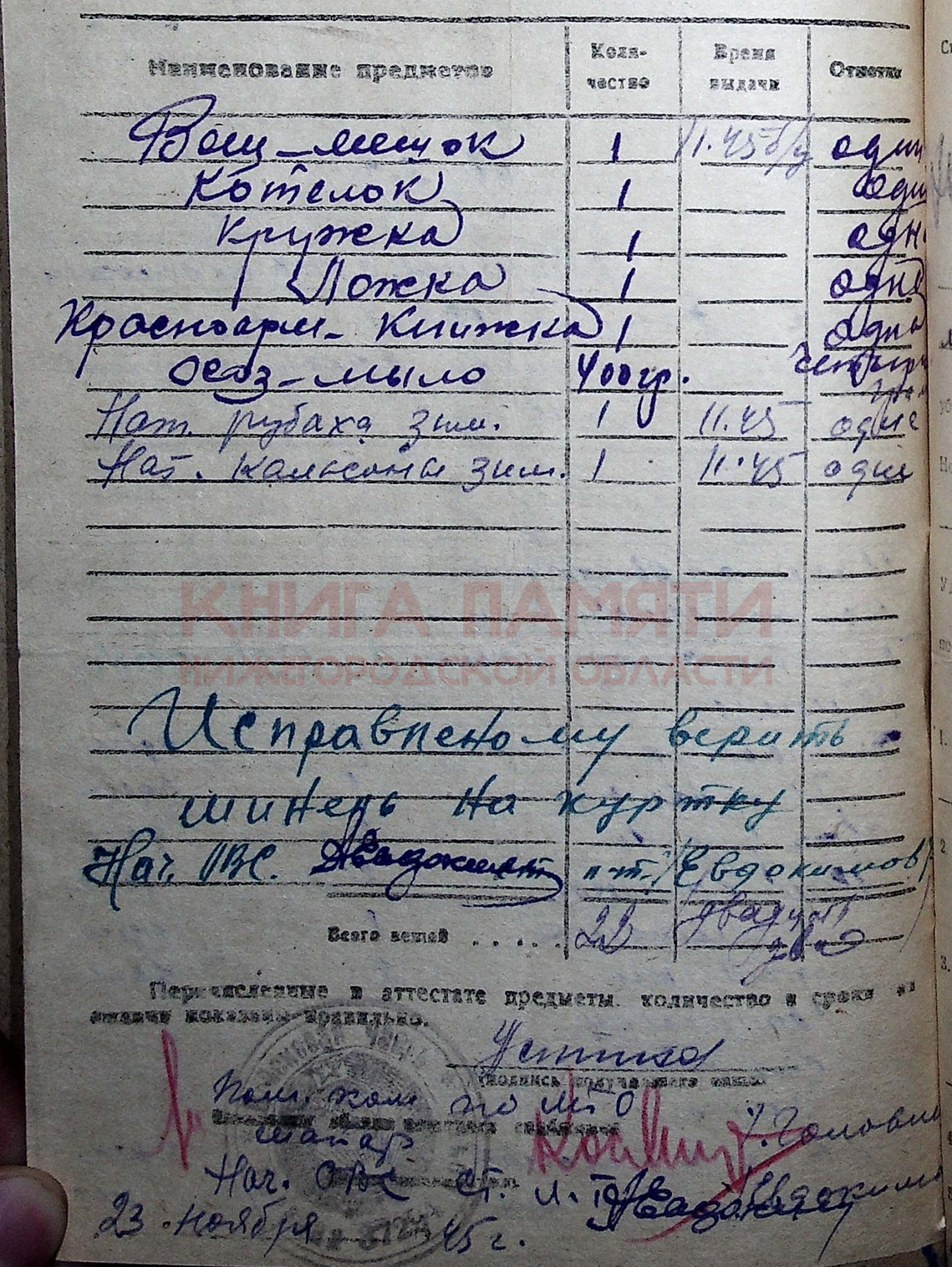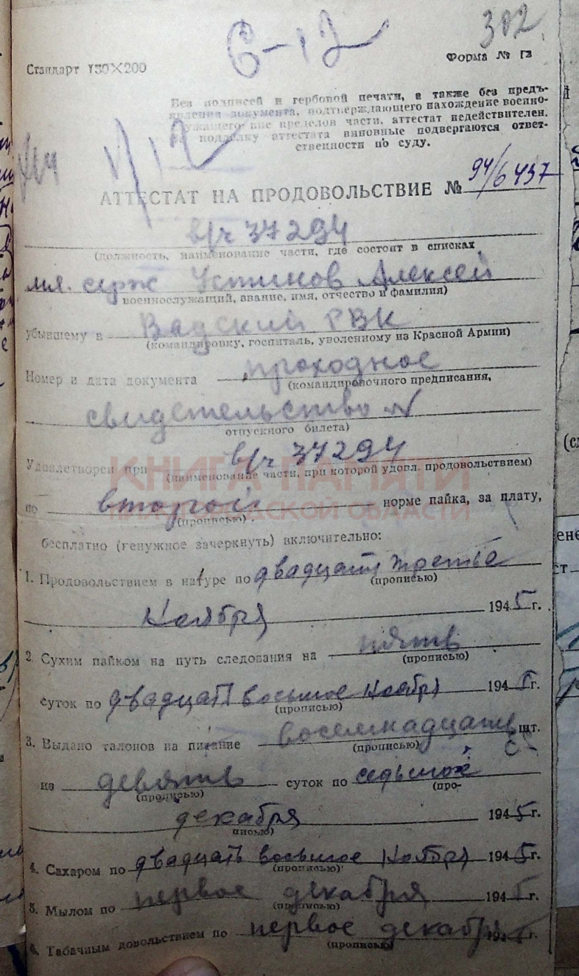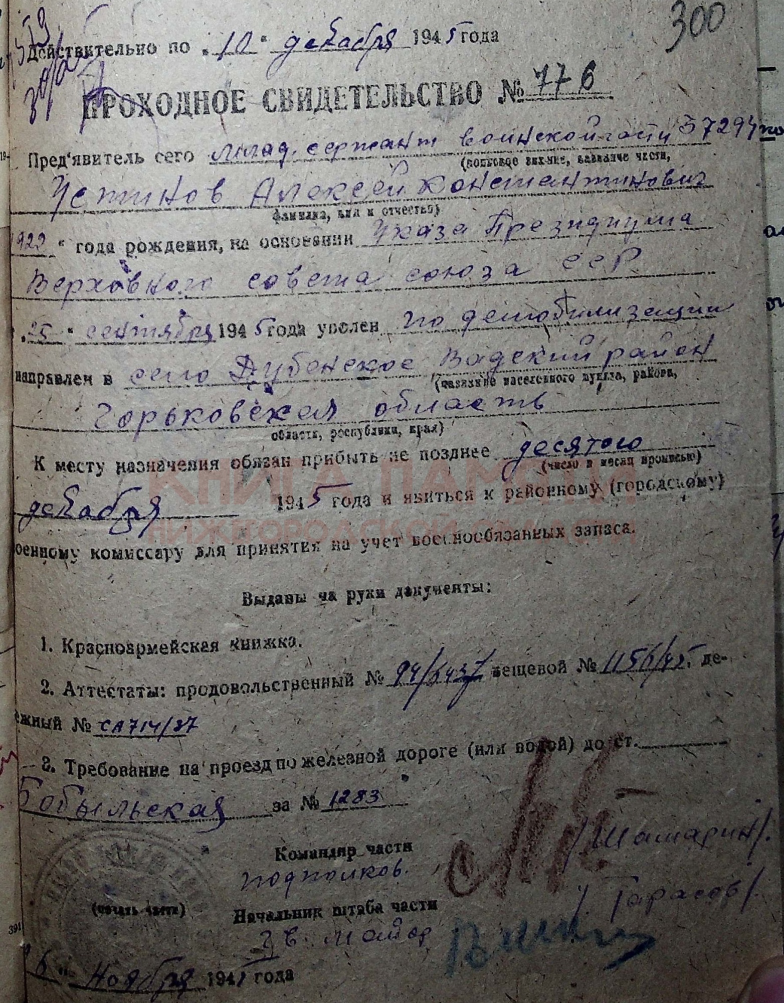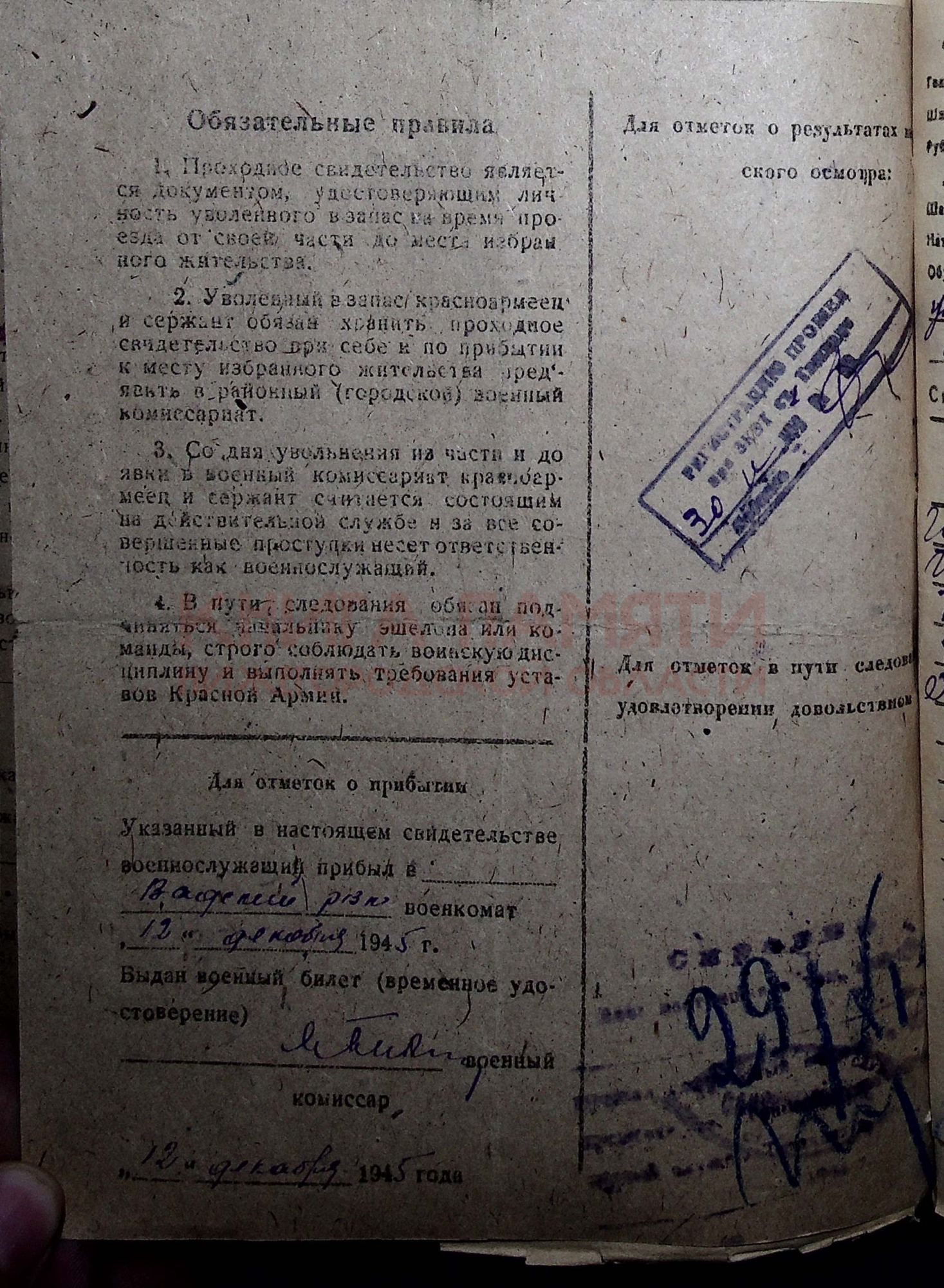 Демобилизован в 1945 г.