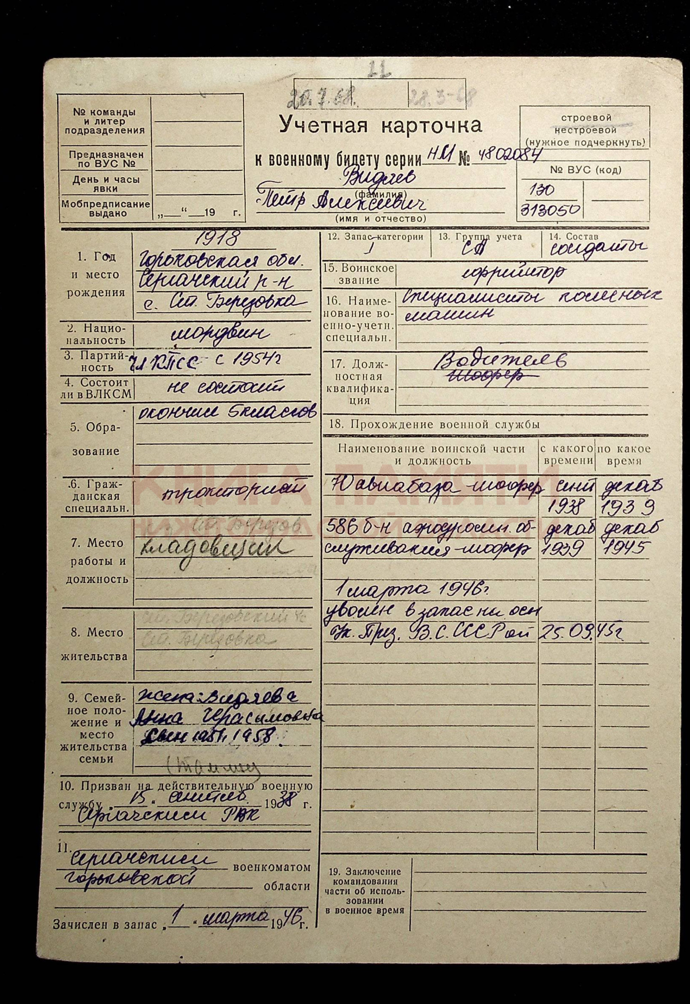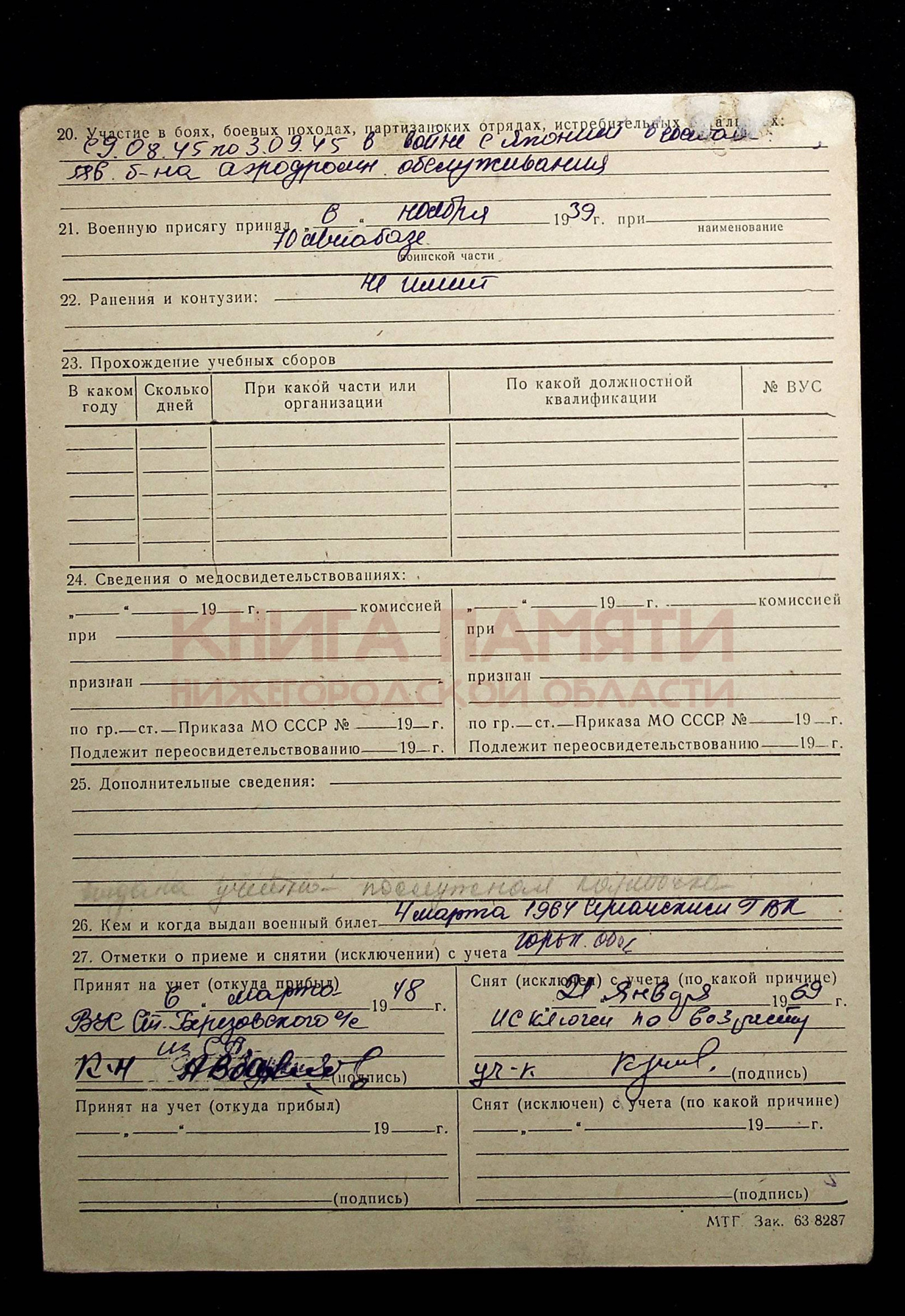 Уволен в запас 25.09.1945 г. Был членом КПСС в 1954 г.