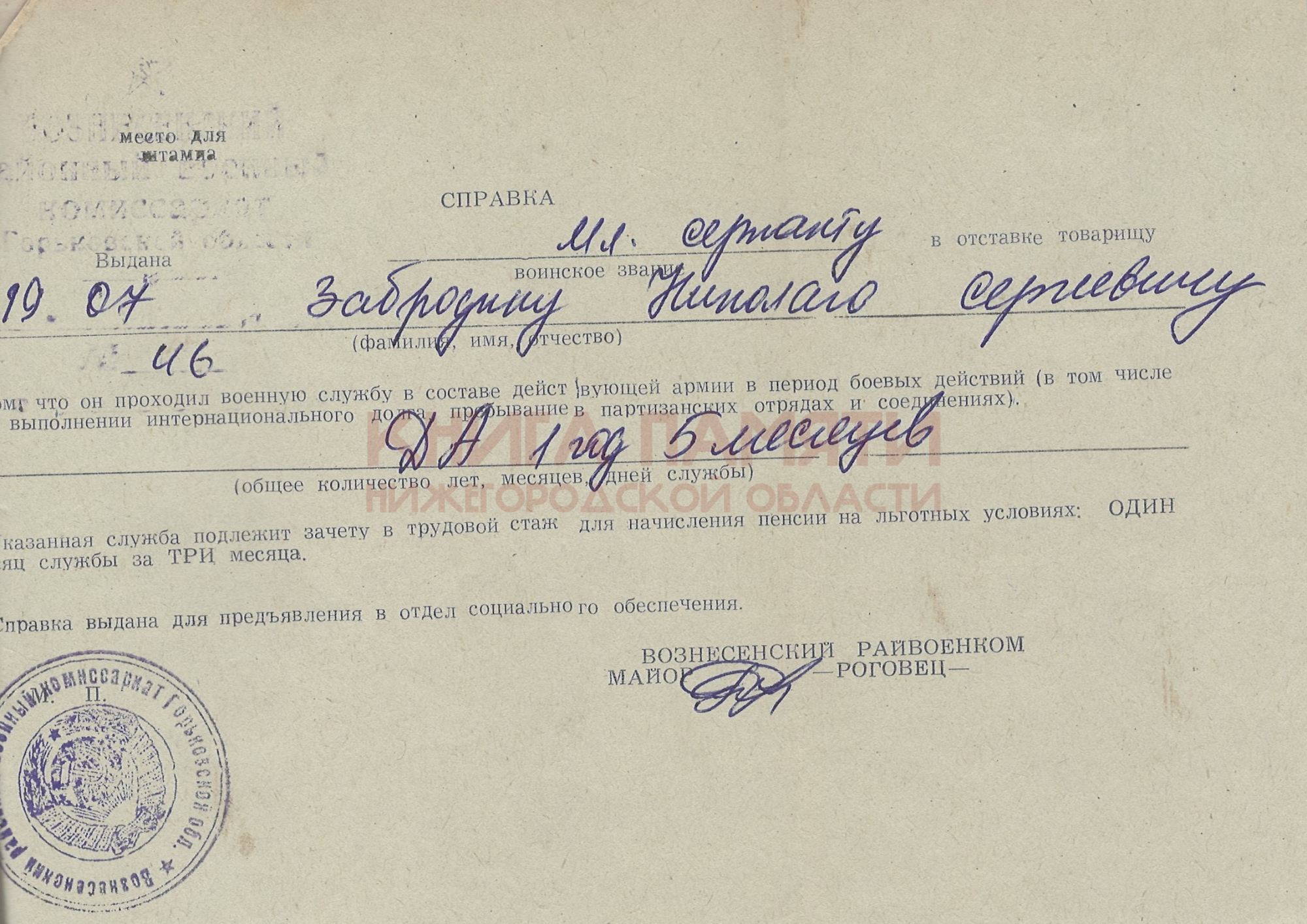 Вознесенский РВК Горьковской области