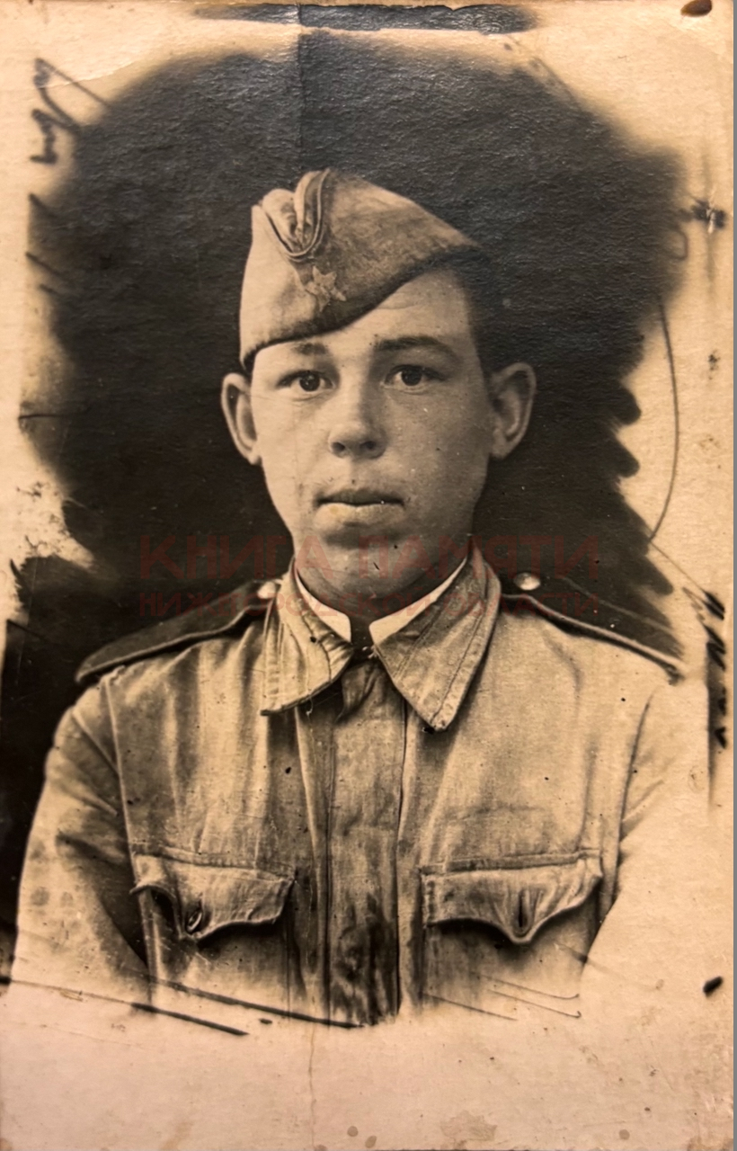 Образование: 7 классов неполной средней школы в 1938 г, военное образование: 2-е Саратовское одногодичное танковое училище в 1945 г. Проходил службу в Вооруженных Силах Союза ССР 01.1943 г. по 05.06.1946 г. Занимал должности: с 01.1943 по 12.1943 на рядовых сержантских должностях, с 12.1943 г. по 01.1945 г. курсант, с 01.1945 по 06.1946 г. командир среднего танка. участвовал в Великой Отечественной войне на 1-ом Украинском фронте с 08.1943 г. по 04.1945, в должности помощник командира танкового взвода, командир среднего танка. Уволен 05.06.1946 г. приказом Войскам Белорусского Военного округа № 0747 от 27.05.1946 года по статье 43 пункту "а". Снят с учета 05.01.1976 г. Автозаводским р-й военкомат, г. Горький по достижению предельного возраста состояния в запасе. В период войны был ранен и лежал в госпитоле. Дошел до Берлина.