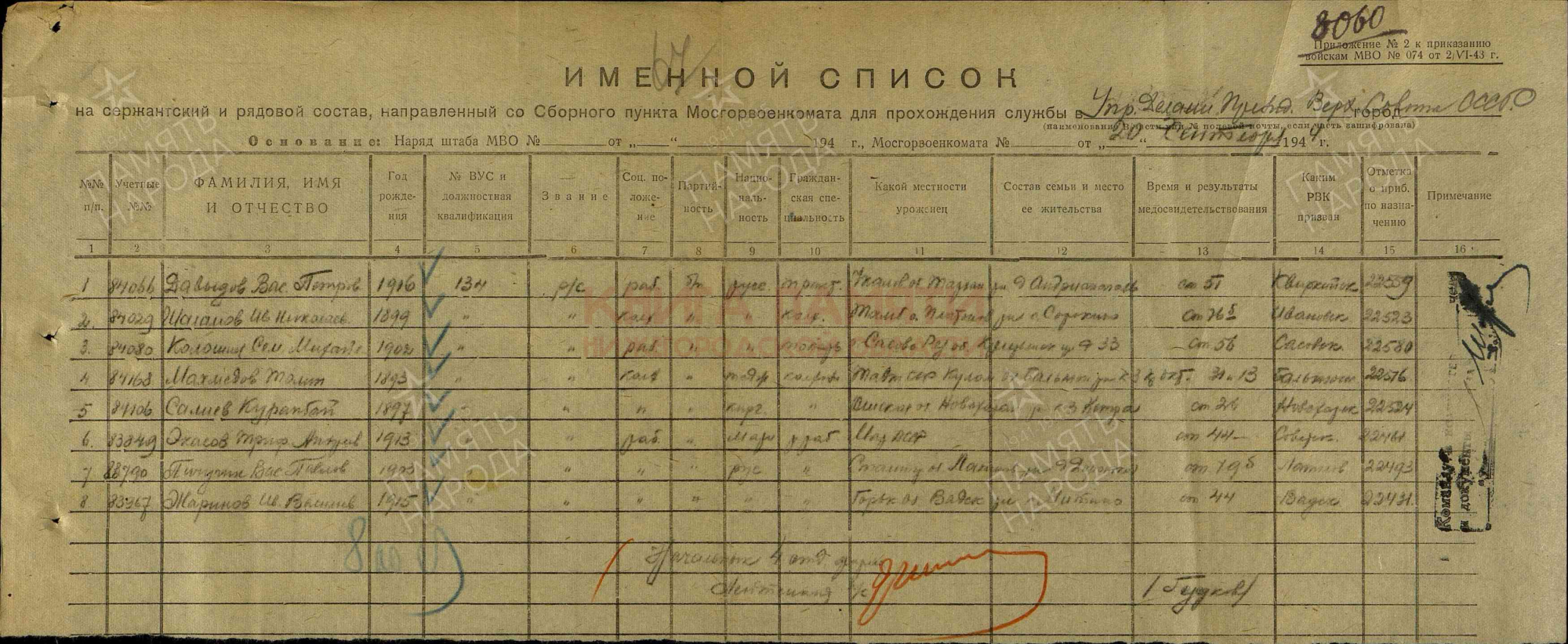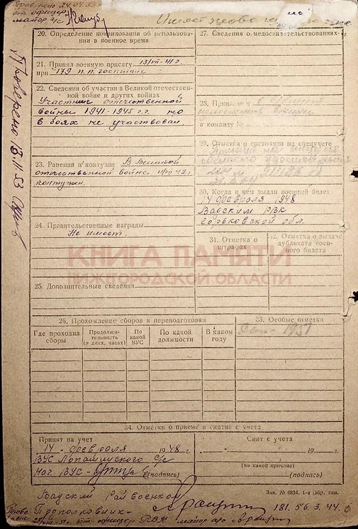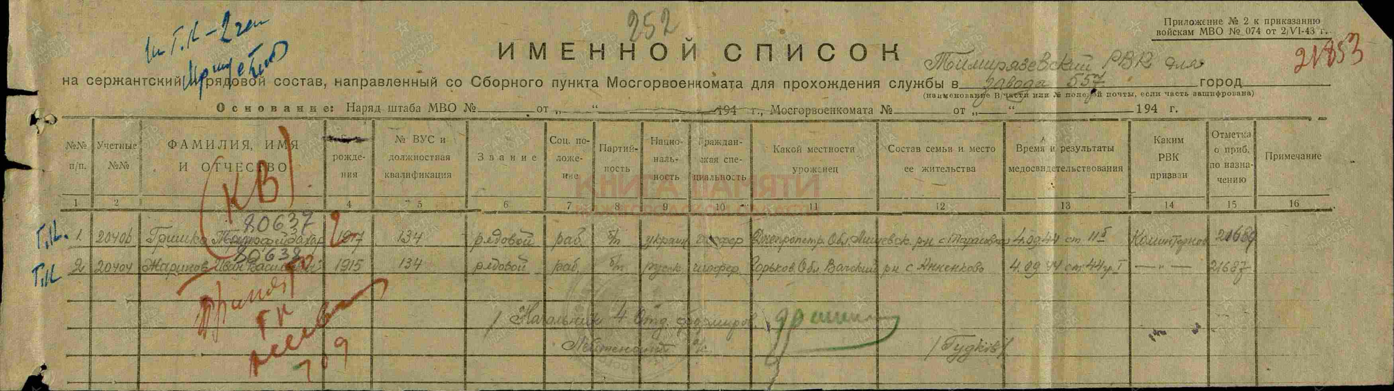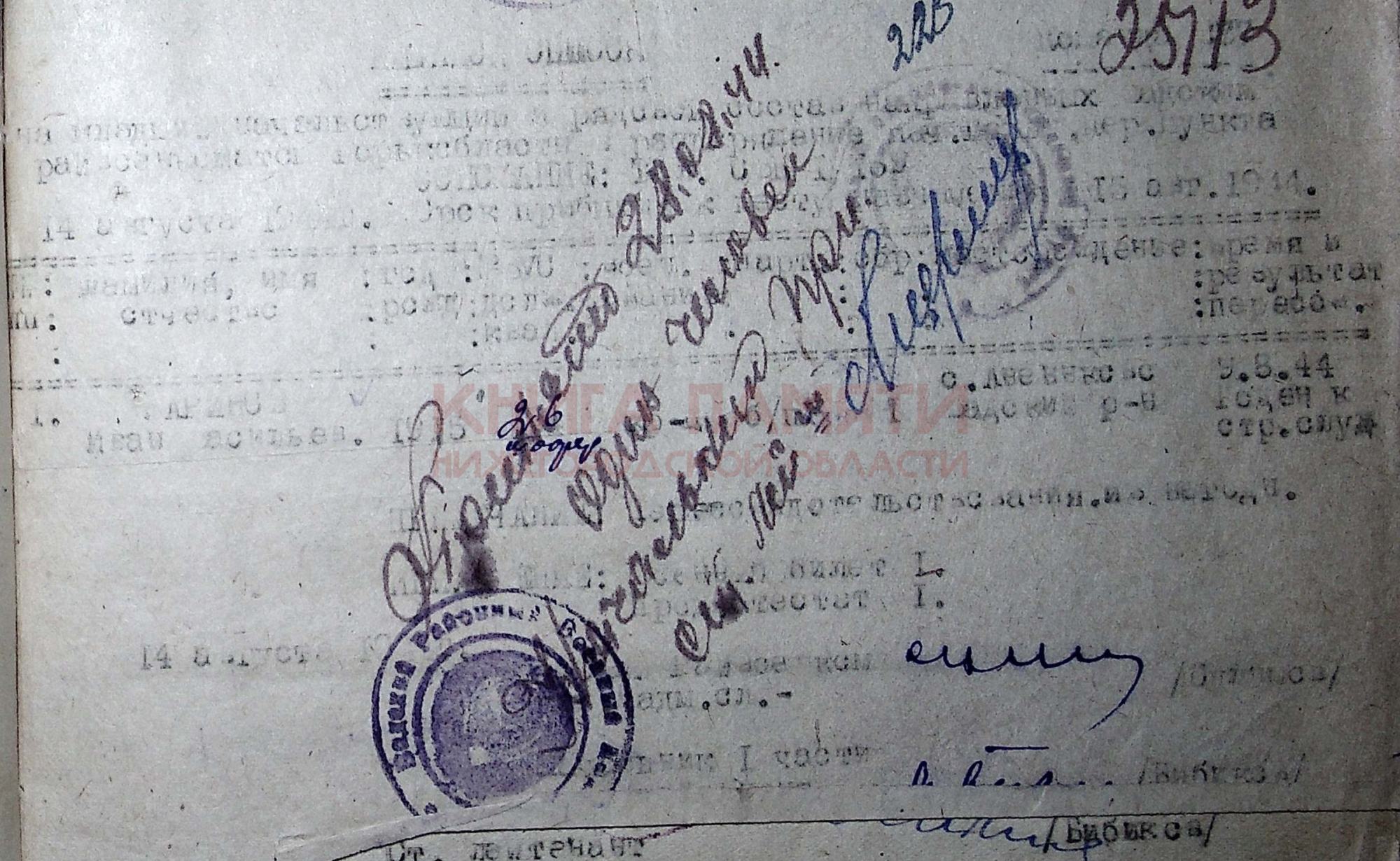 Шофер эвакогоспиталя с 22.09. 1942 по 31.12.1944 год