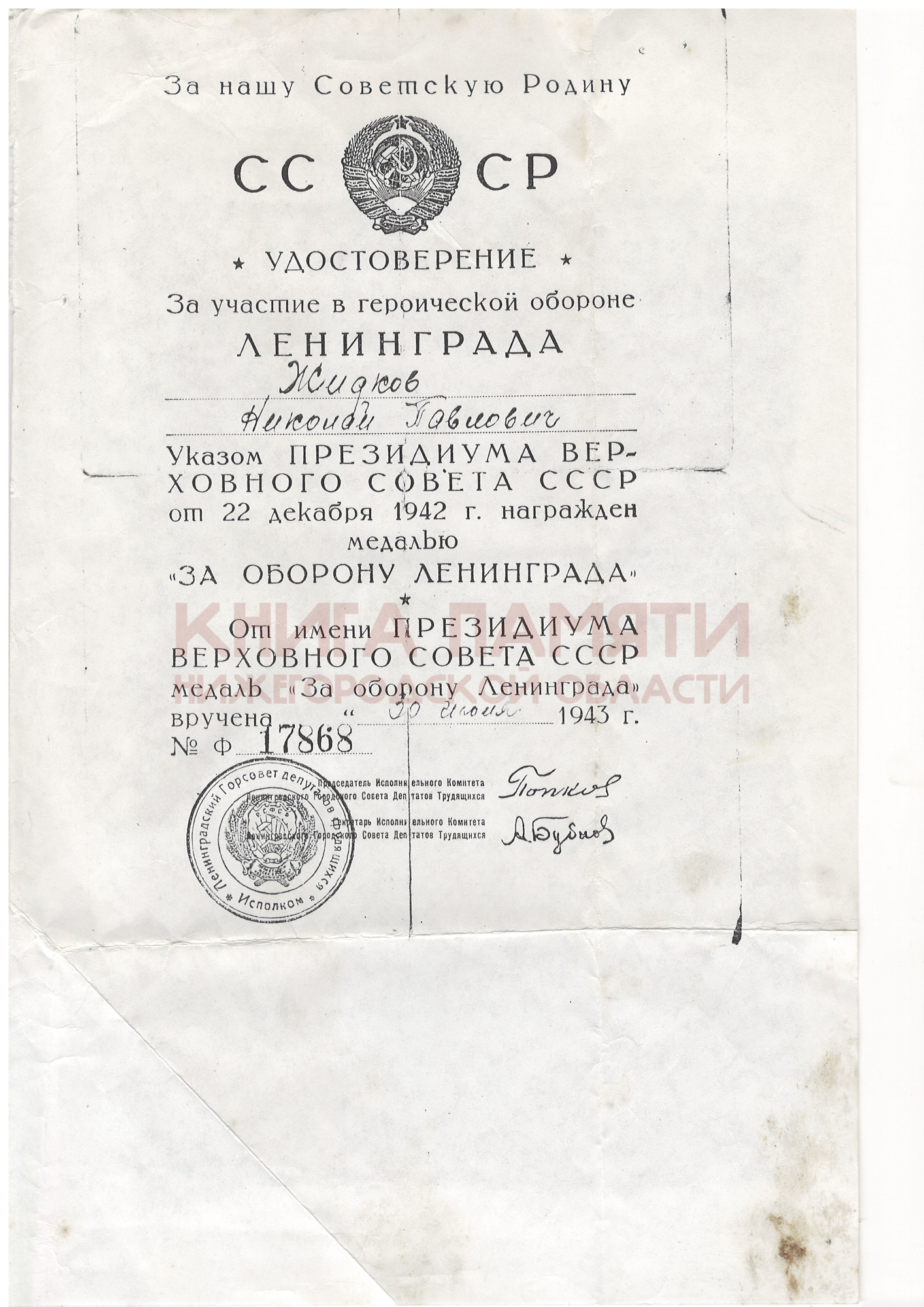 Медаль "За оборону Ленинграда".