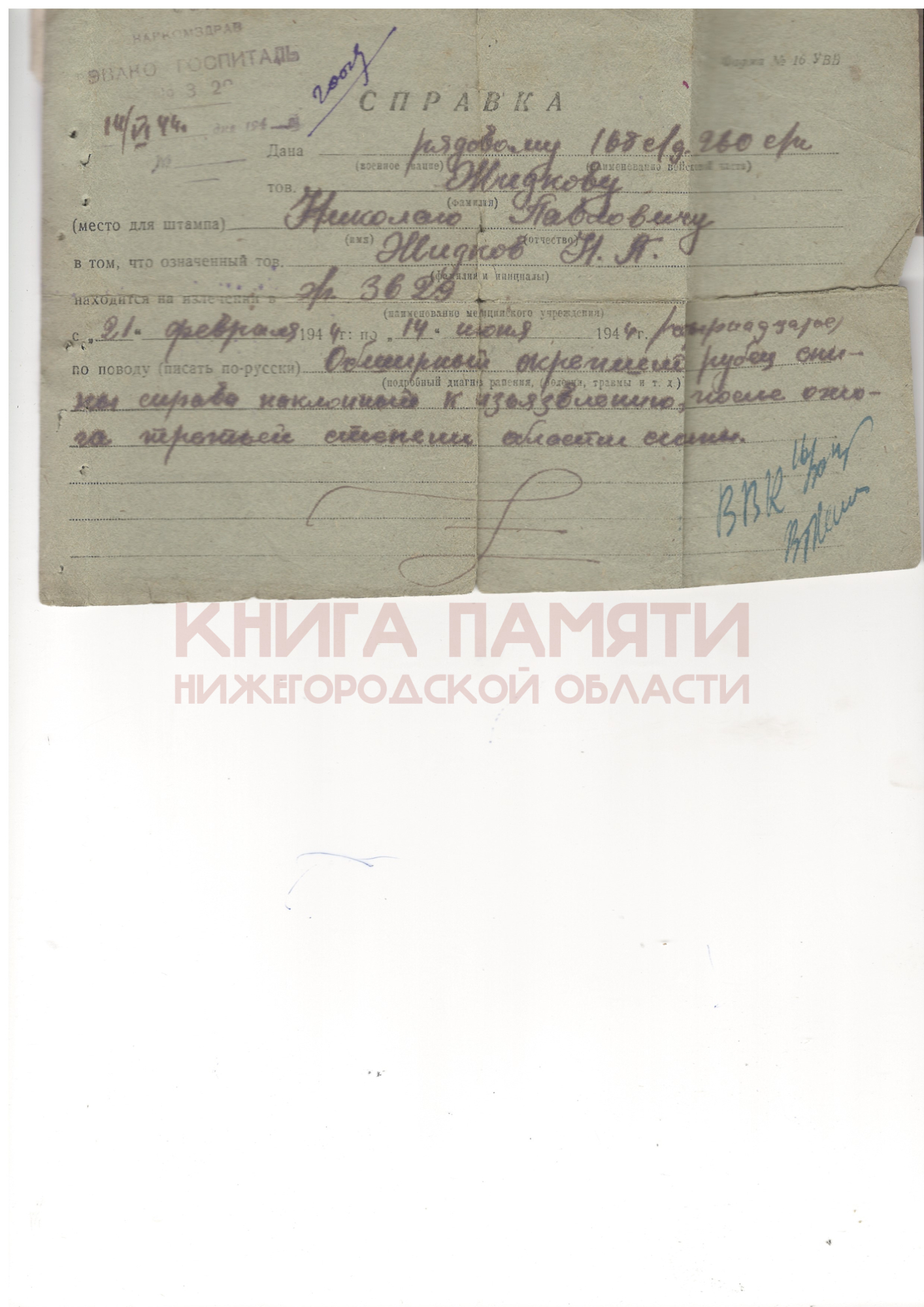 Вернулся с фронта. Умер 20.11.2000