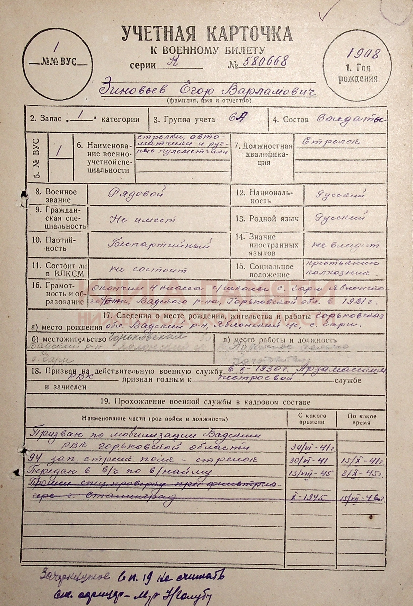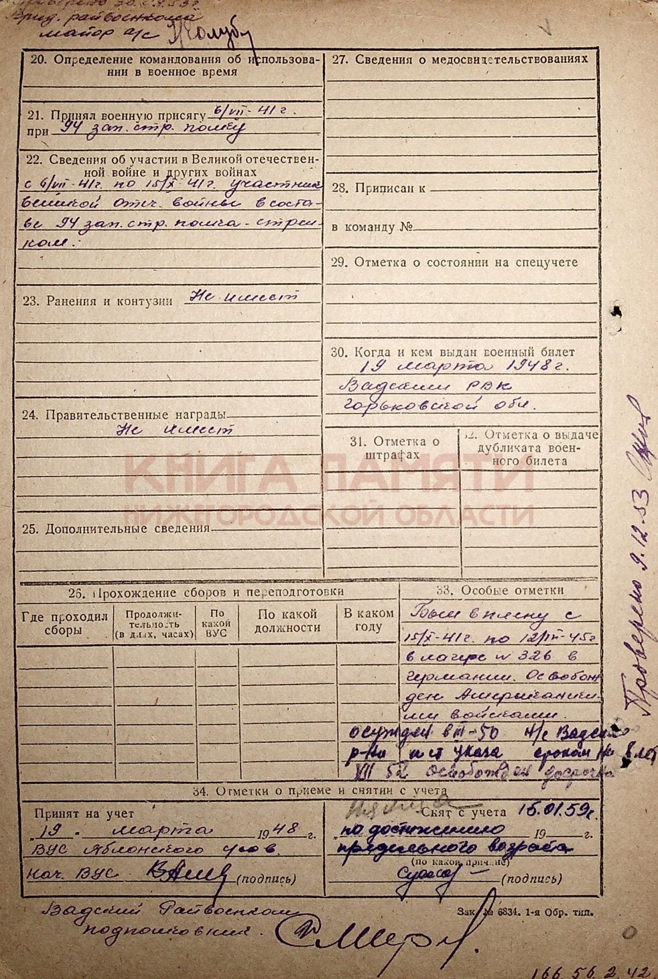Демобилизован, после ВОВ был осуждён
