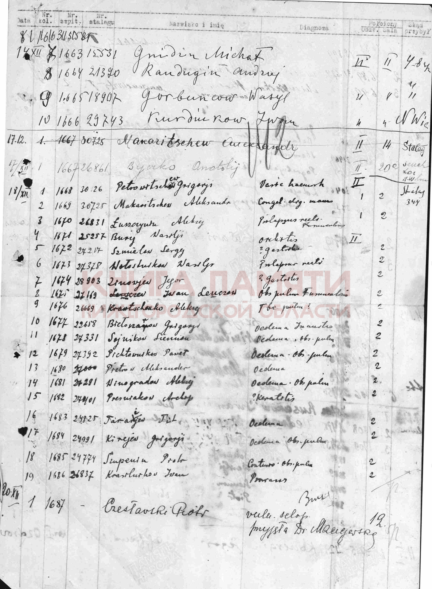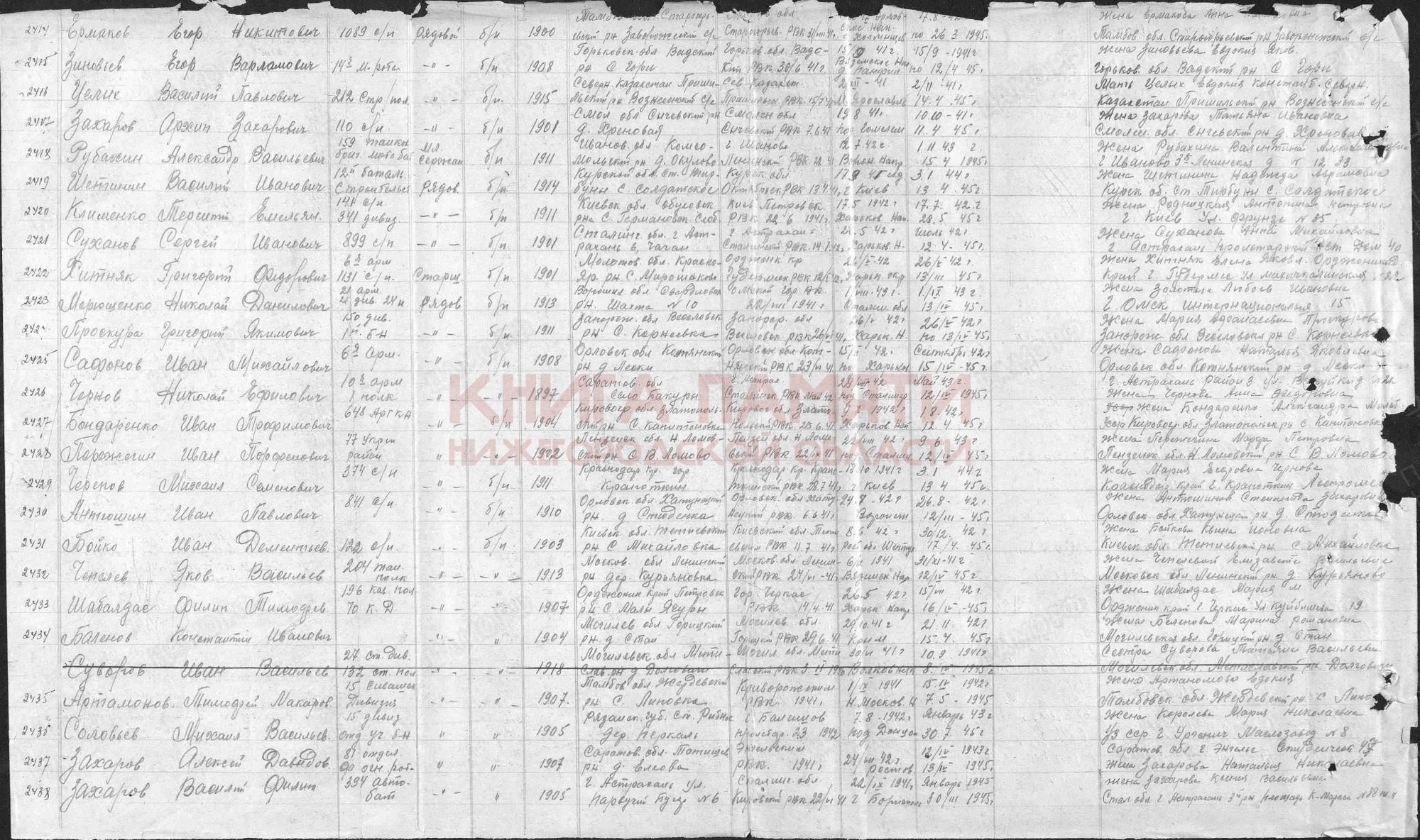 Был в плену с 15.10.1941 г. - 12.04.1945 г. в лагере №326 в Германии. Освобожден американскими войсками.