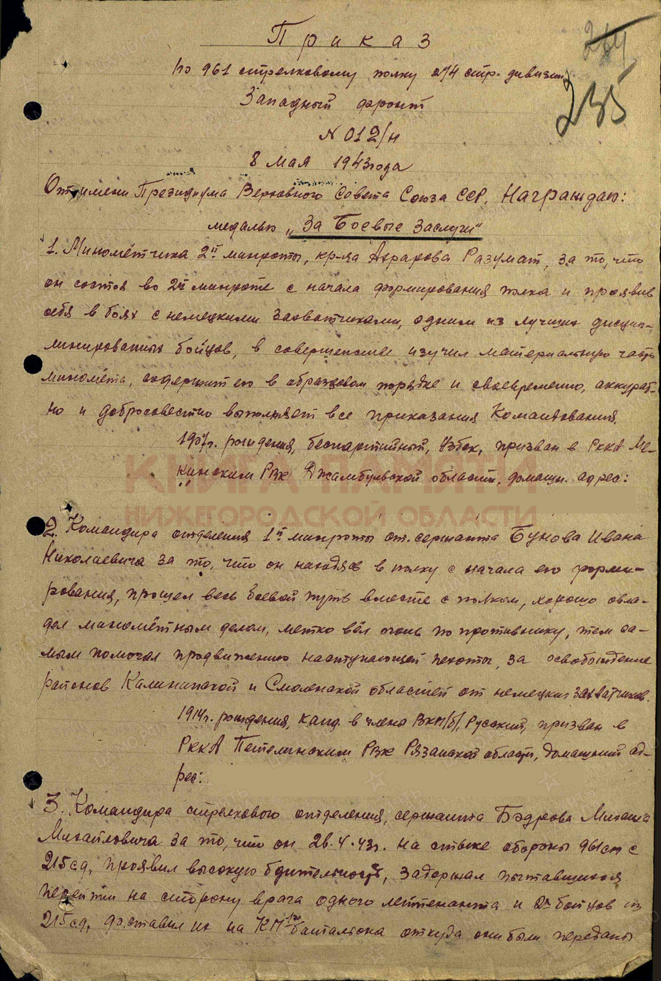 961 стрелковый полк 274 стрелковой дивизии (I)